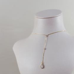 Colar gravatinha zircônias redonda e gota com cravejado 9mm 50cm com alongadora | asth