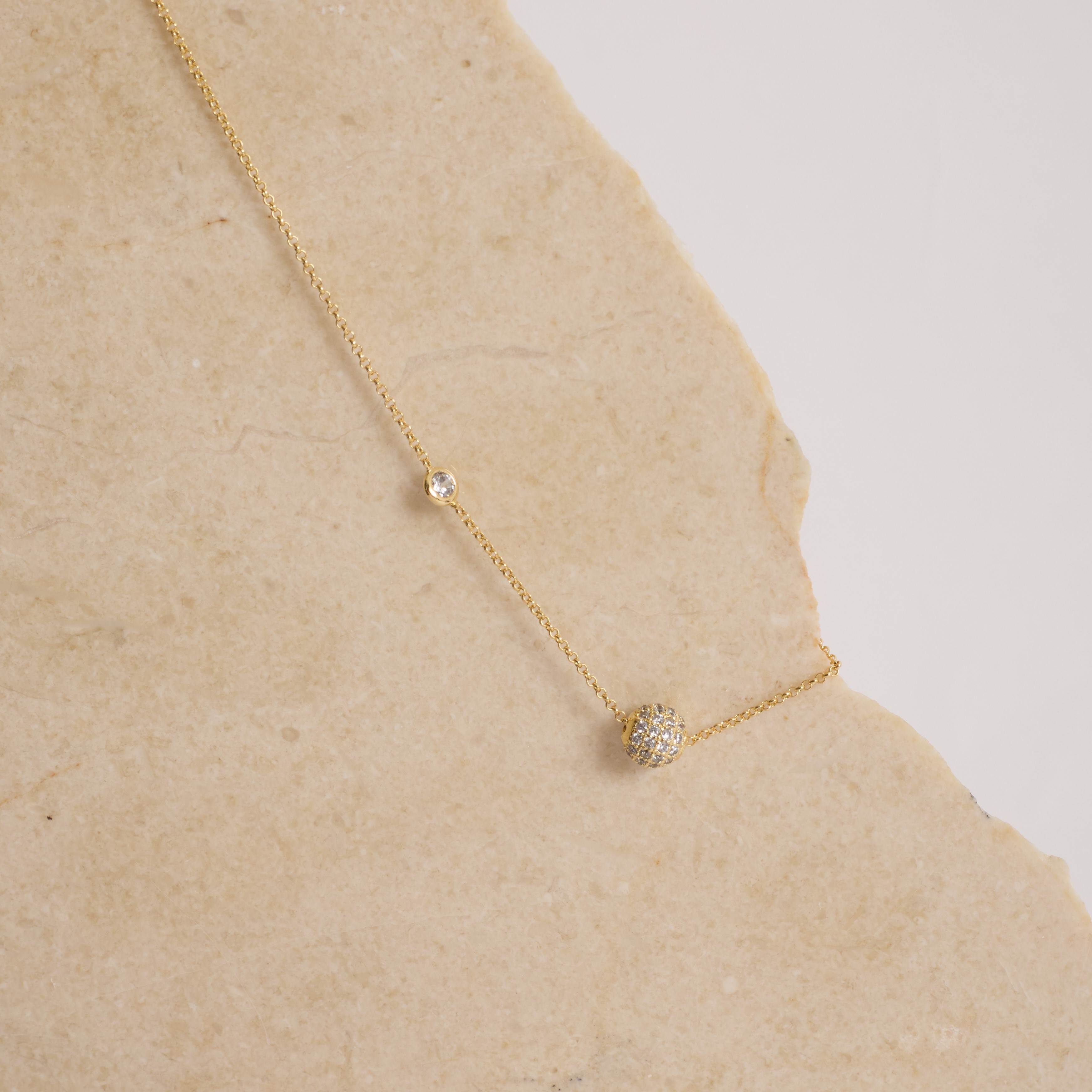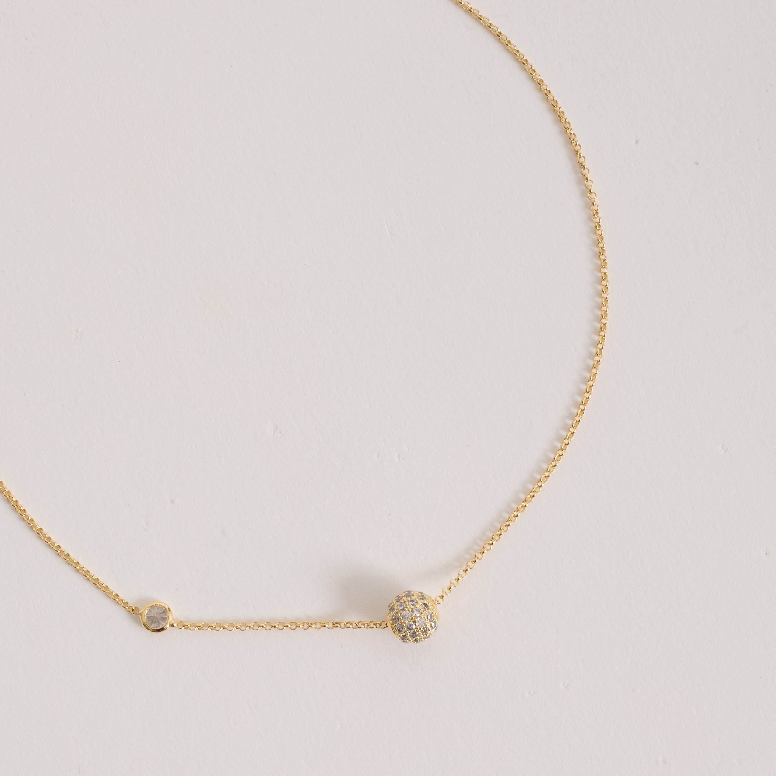 Colar entremeio zircônia e bola cravejada 6mm 40cm com alongadora | asth