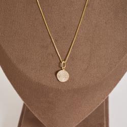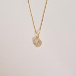 Colar pingente círculo ondulado cravejado 11mm 45cm com alongadora