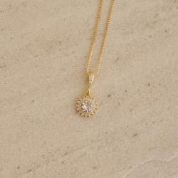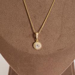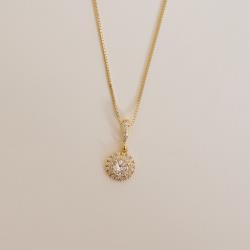 Colar pingente zircônia redonda com duplo cravejado 10mm 45cm com alongadora