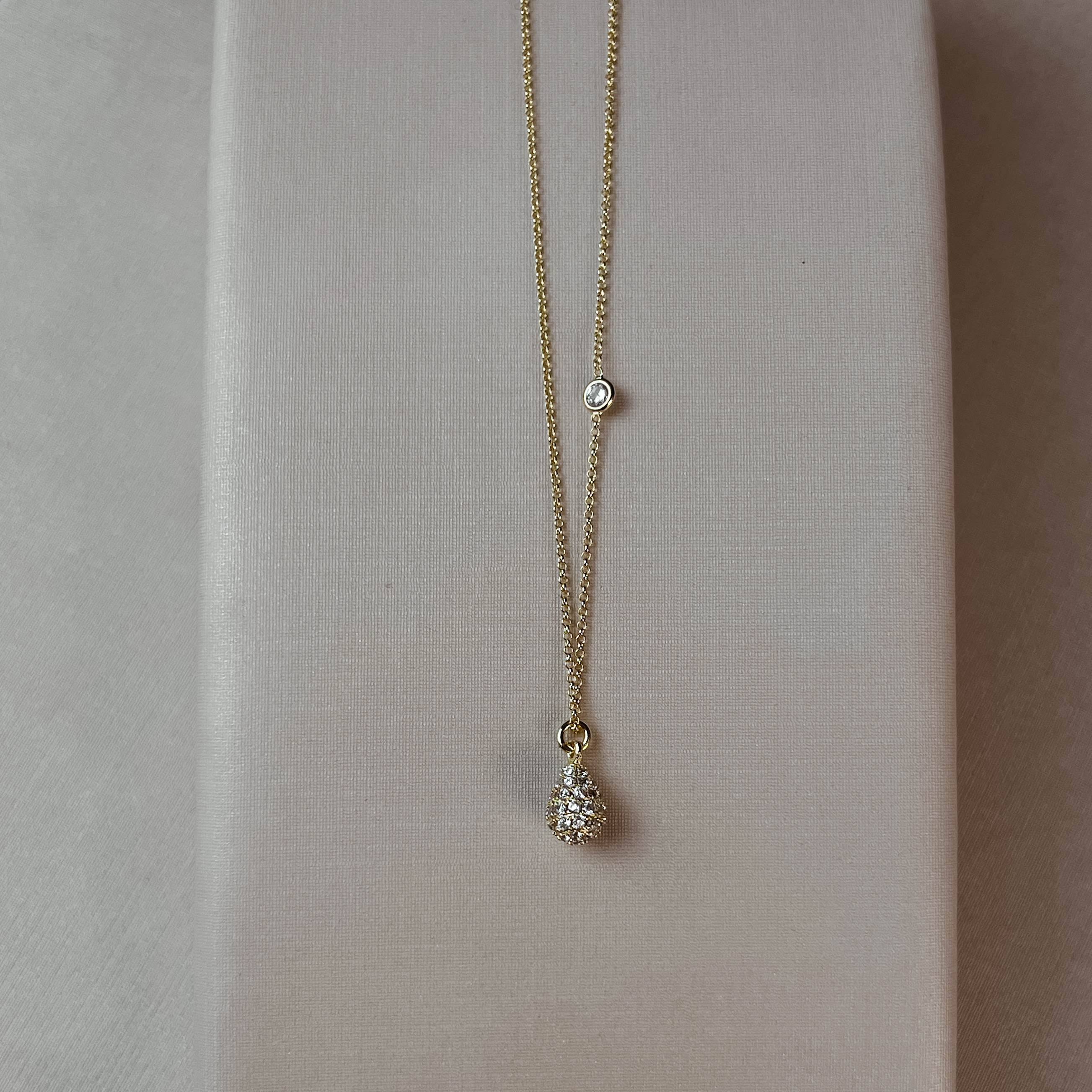 Colar entremeio zircônia com pingente gota cravejada 9mm corrente elo português 45cm com alongadora | asth
