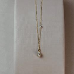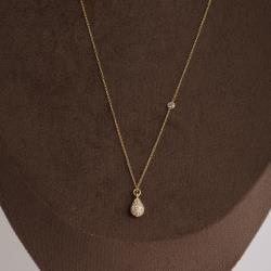 Colar entremeio zircônia com pingente gota cravejada 9mm corrente elo português 45cm com alongadora