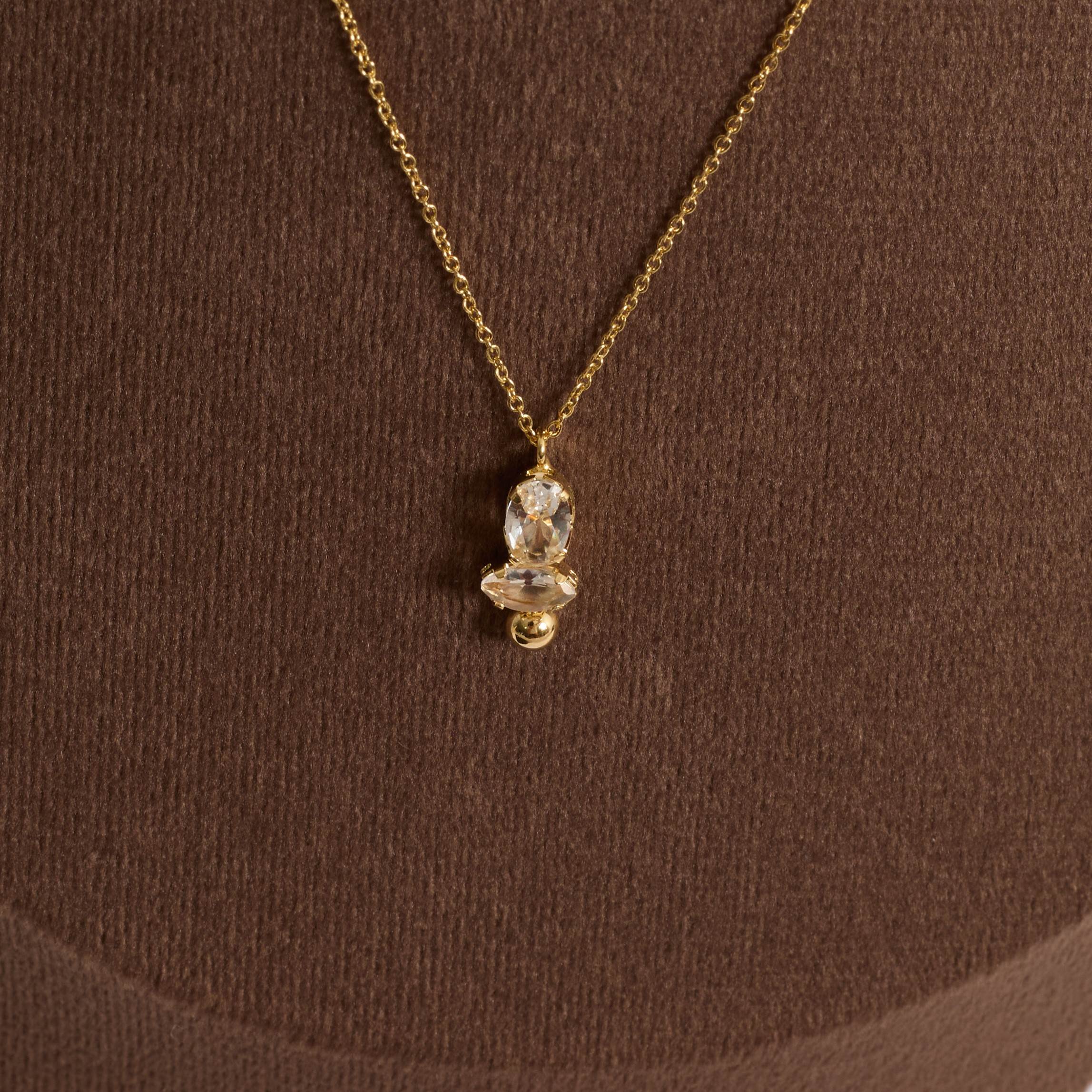 Colar pingente zircônias oval, navete e bola 13mm corrente cadeado 45cm com alongadora | asth