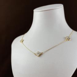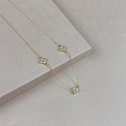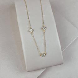 Colar entremeio trevos cravejados 8mm corrente cadeado 45cm com alongadora | asth