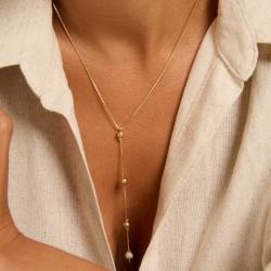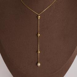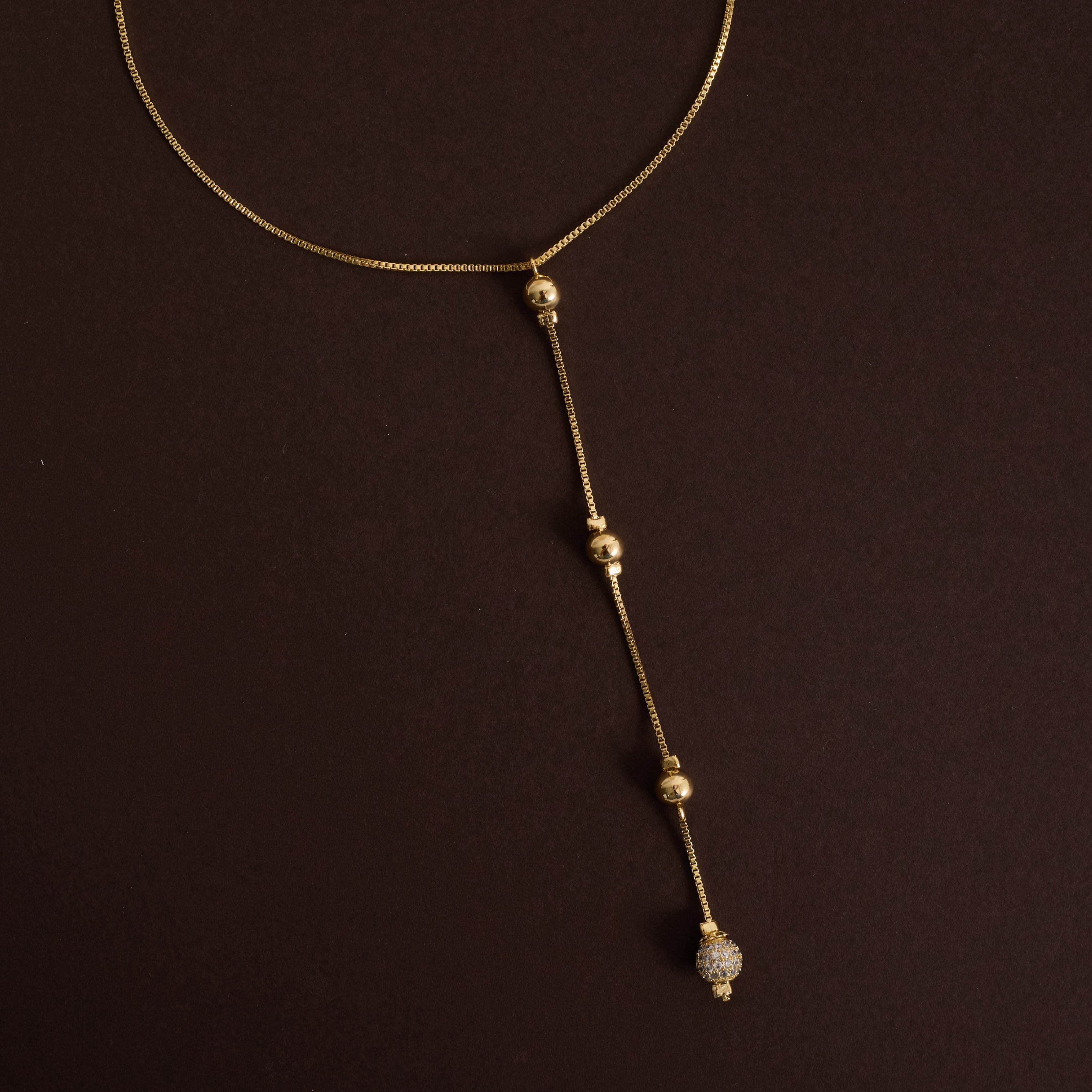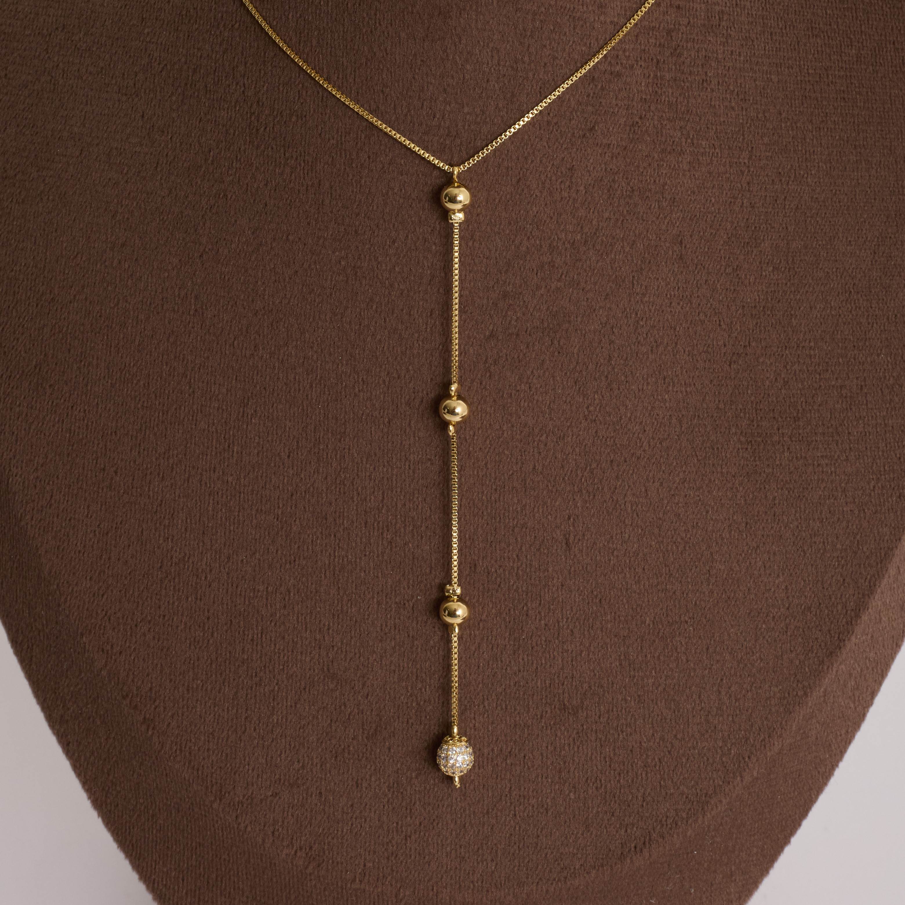 Colar gravatinha bolas lisas e cravejada 6mm 45cm com alongadora