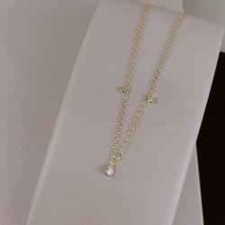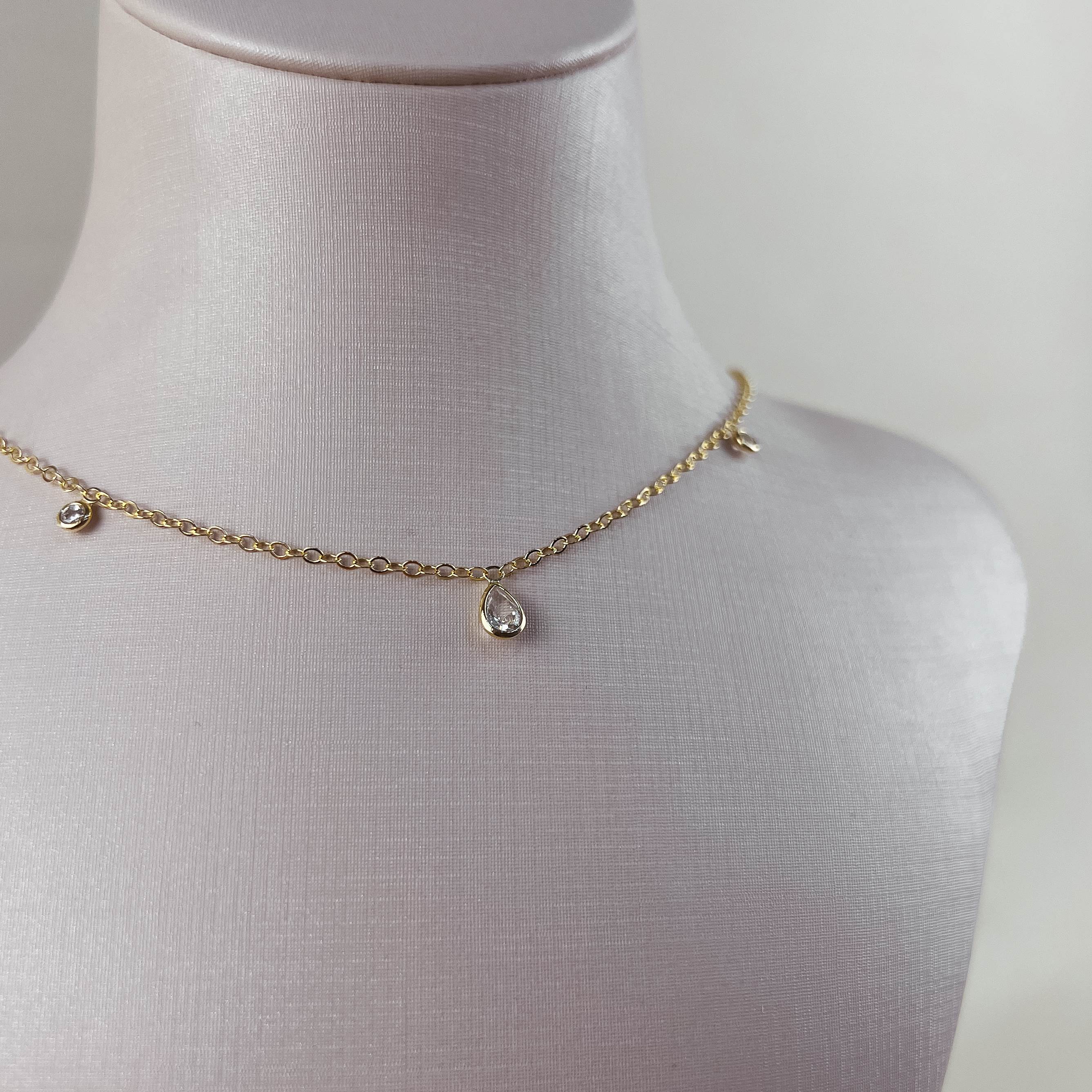Choker pingentes zircônias redonda 4mm e gota 7mm corrente cadeado com alongadora | asth