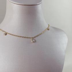 Choker pingentes zircônias redonda 4mm e gota 7mm corrente cadeado com alongadora