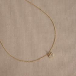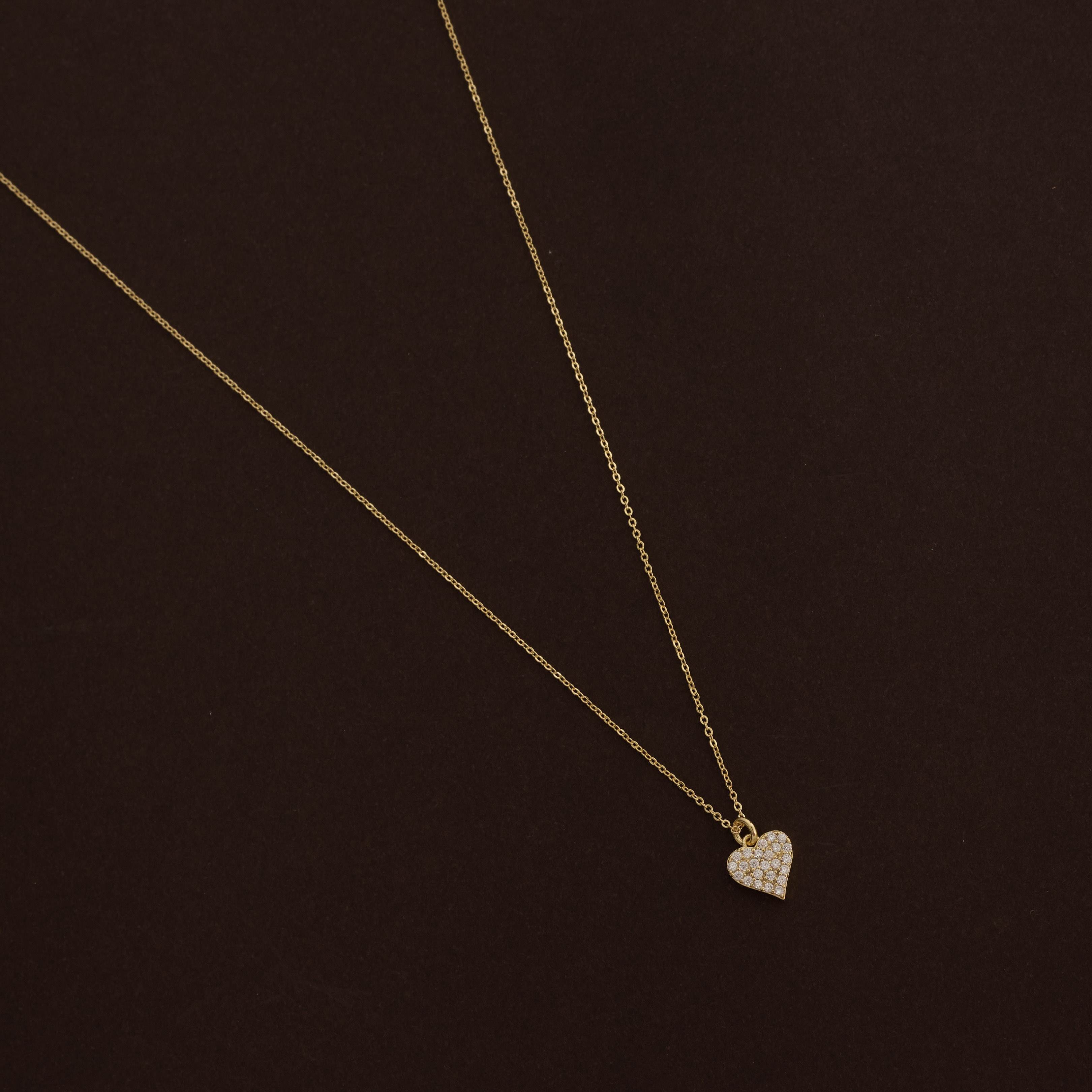 Colar pingente coração cravejado 8mm corrente cadeado 45cm com alongadora | asth
