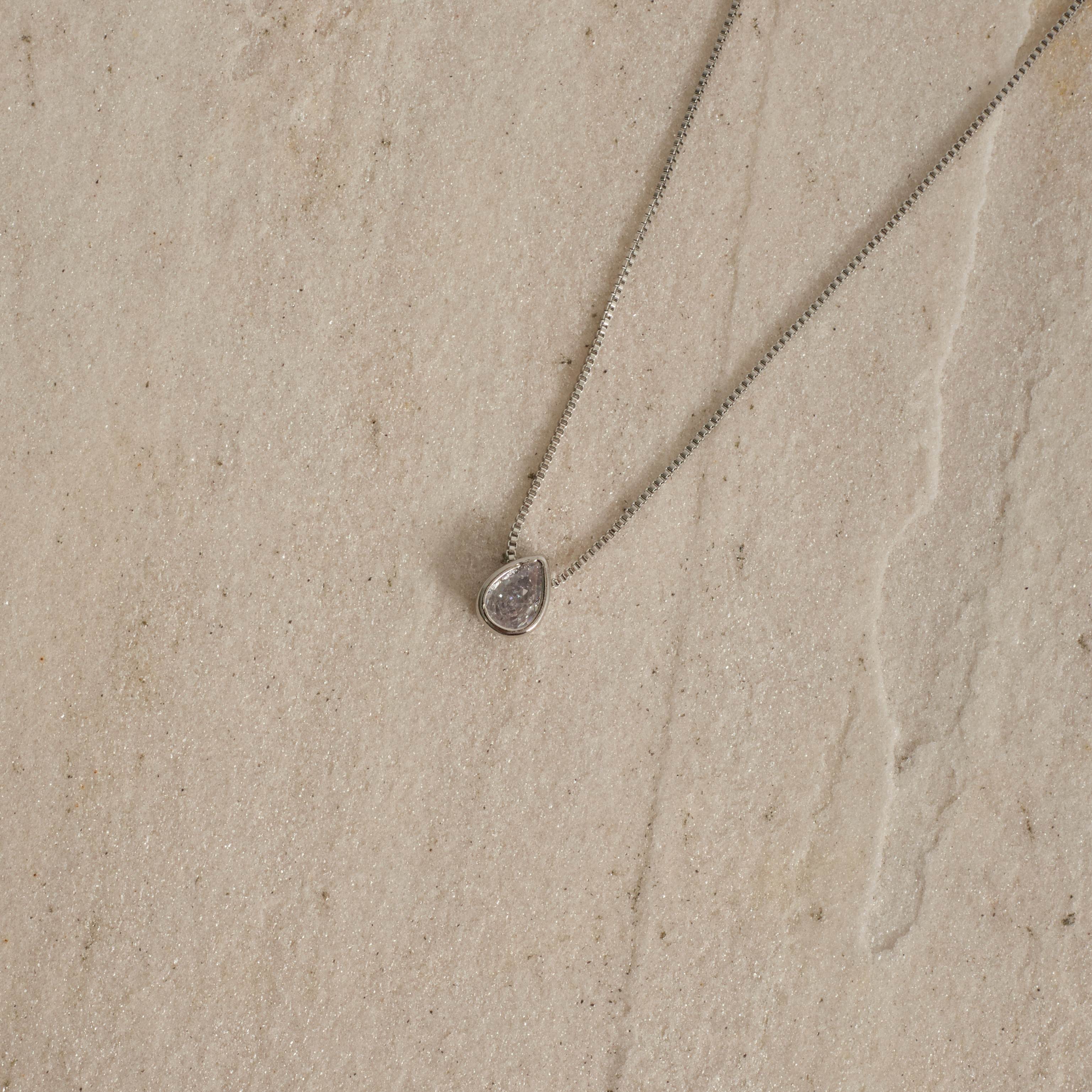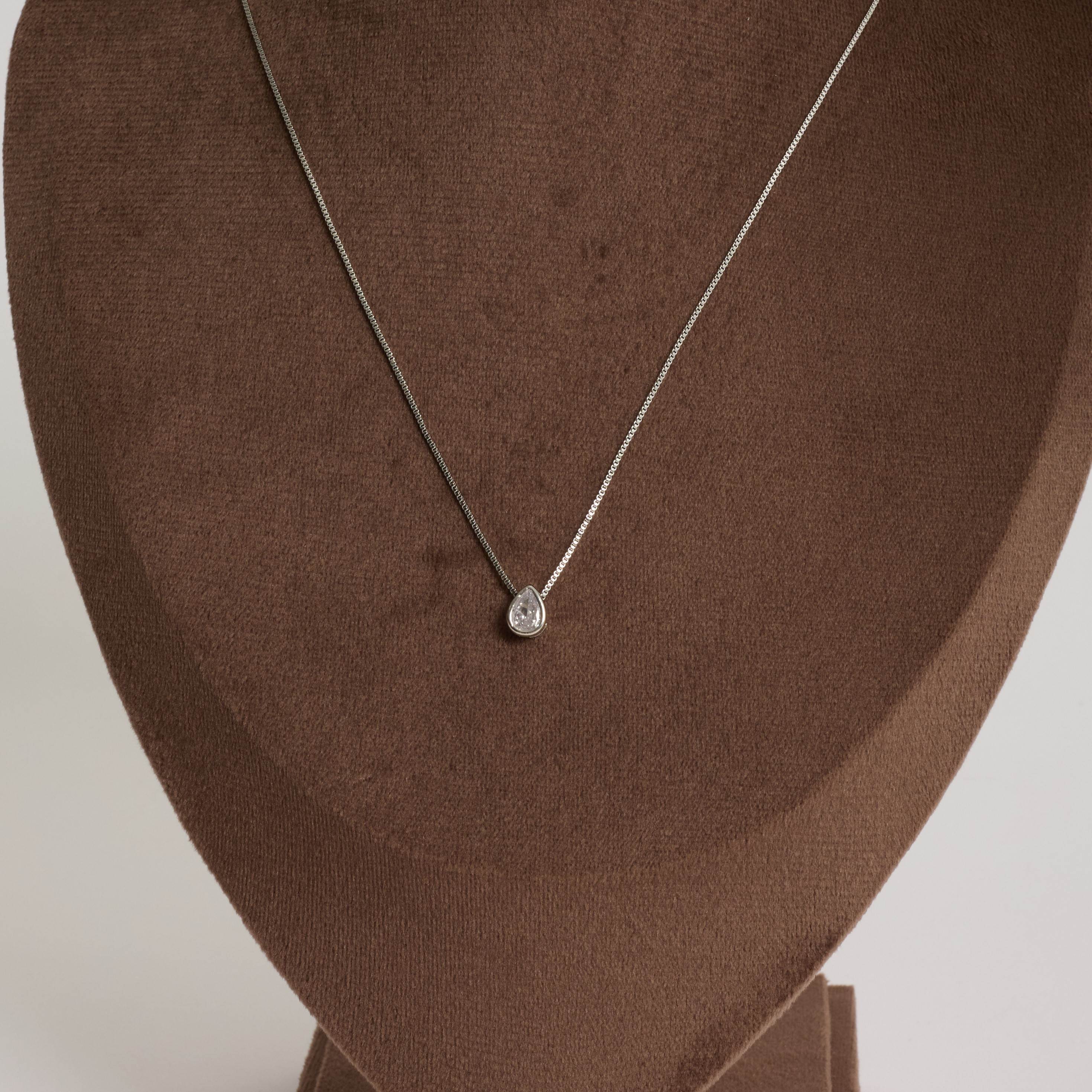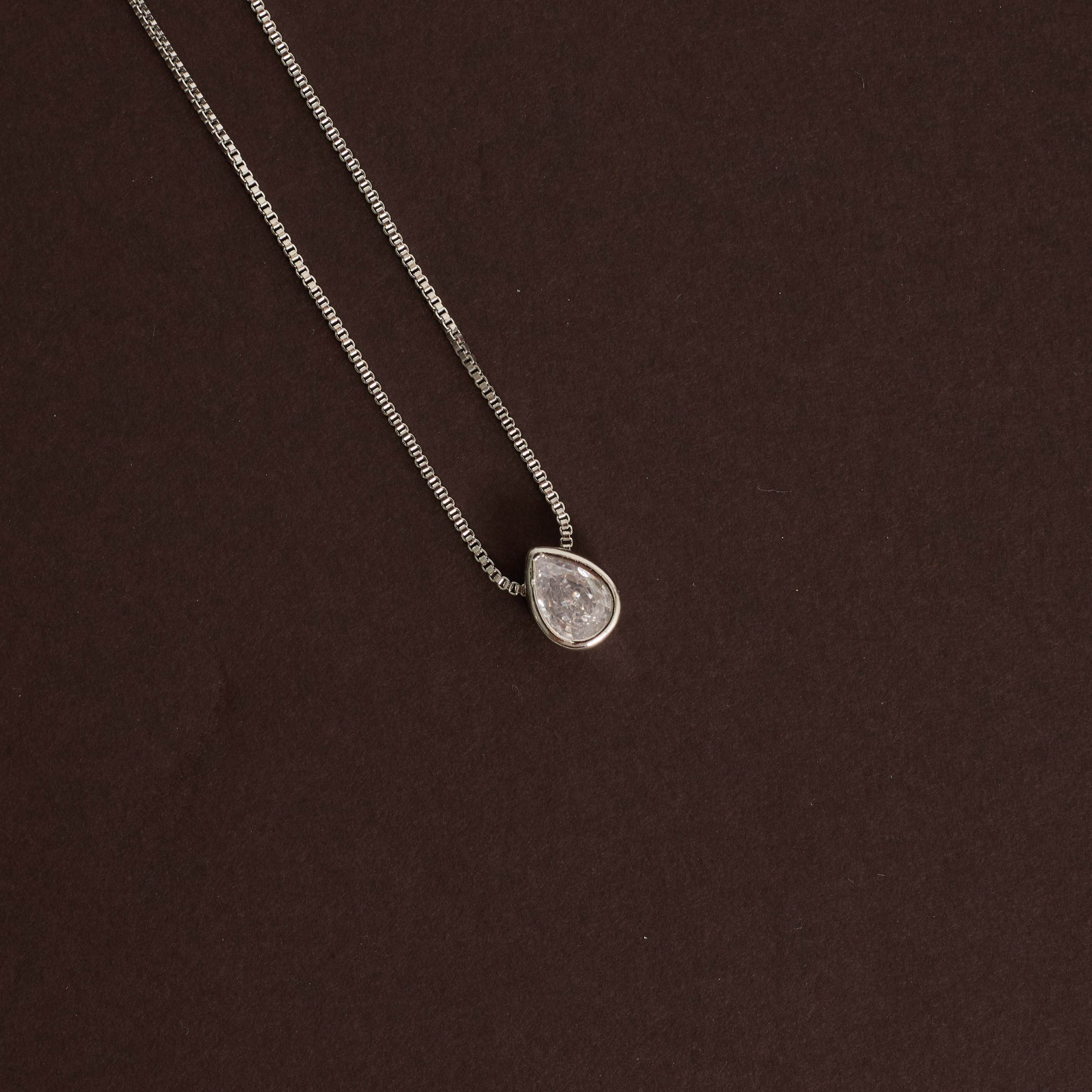 Colar zircônia gota embutida 8mm 45cm com alongadora