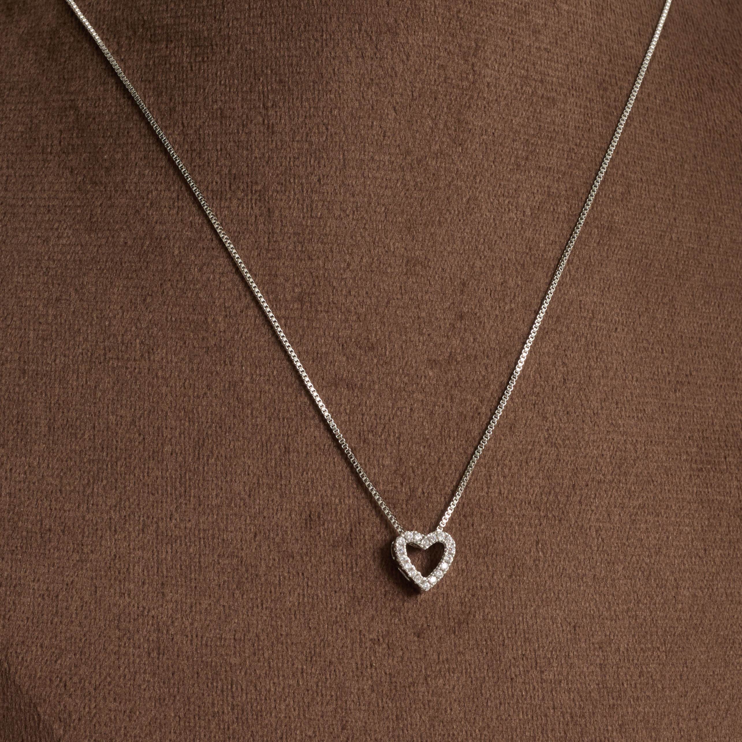 Colar coração vazado cravejado 9mm 40cm com alongadora | asth