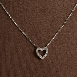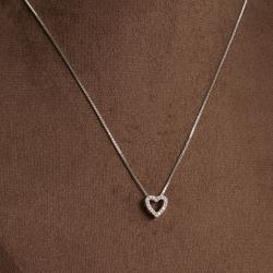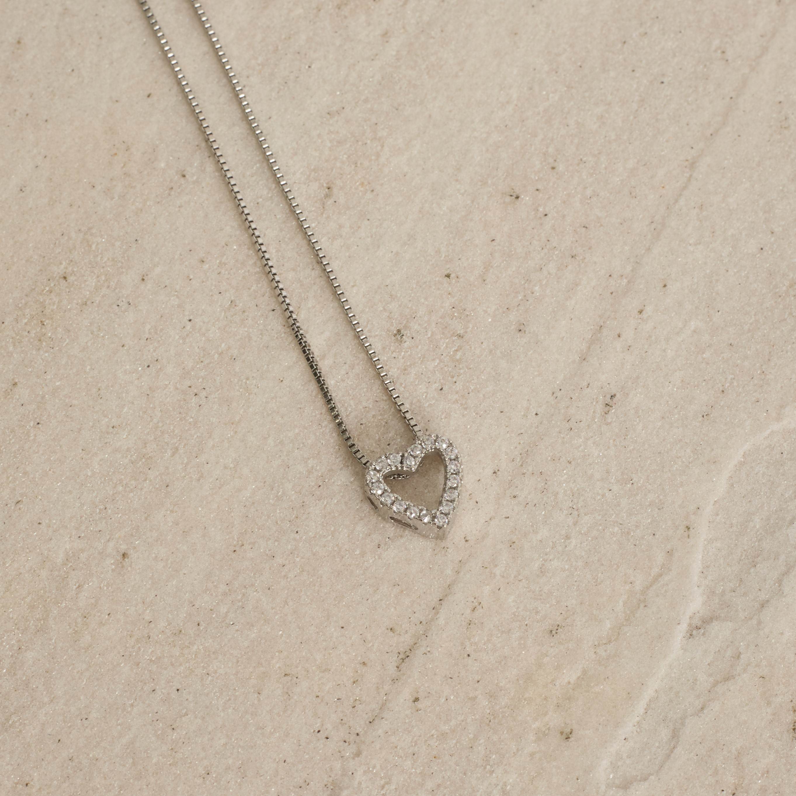 Colar coração vazado cravejado 9mm 40cm com alongadora