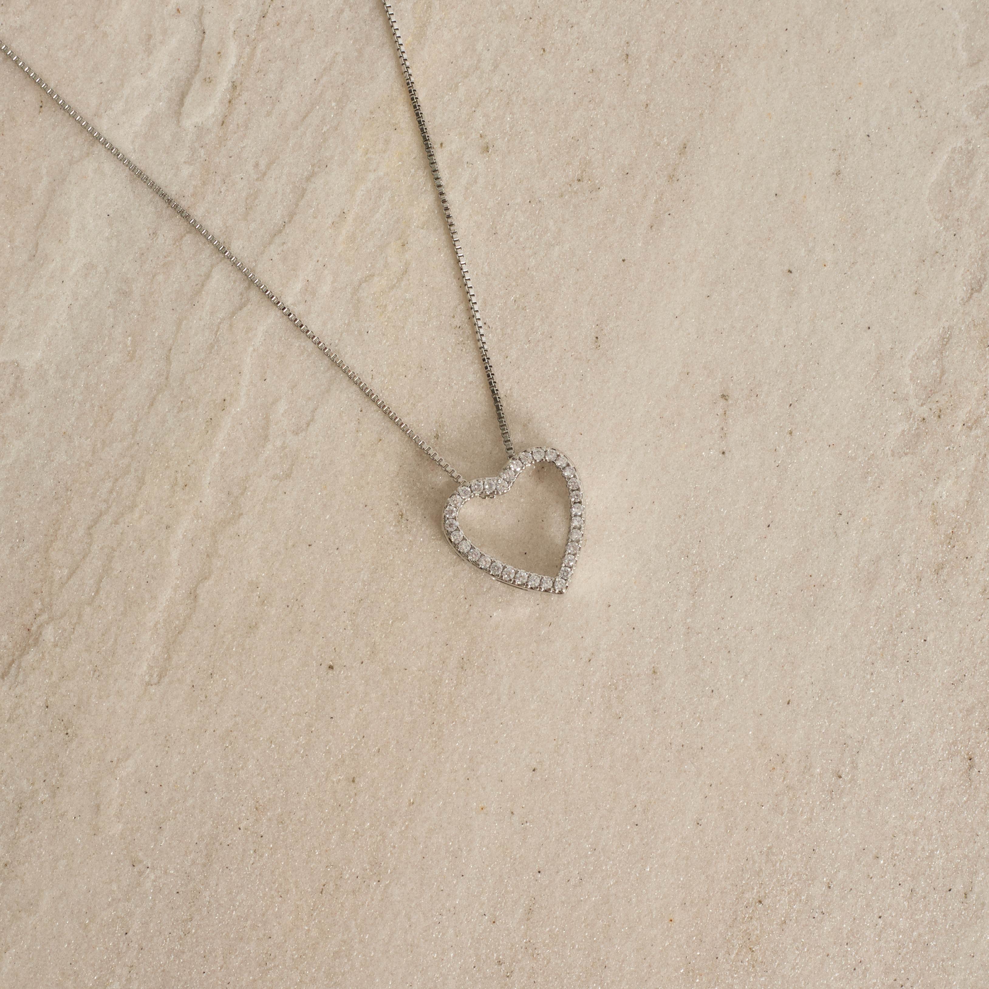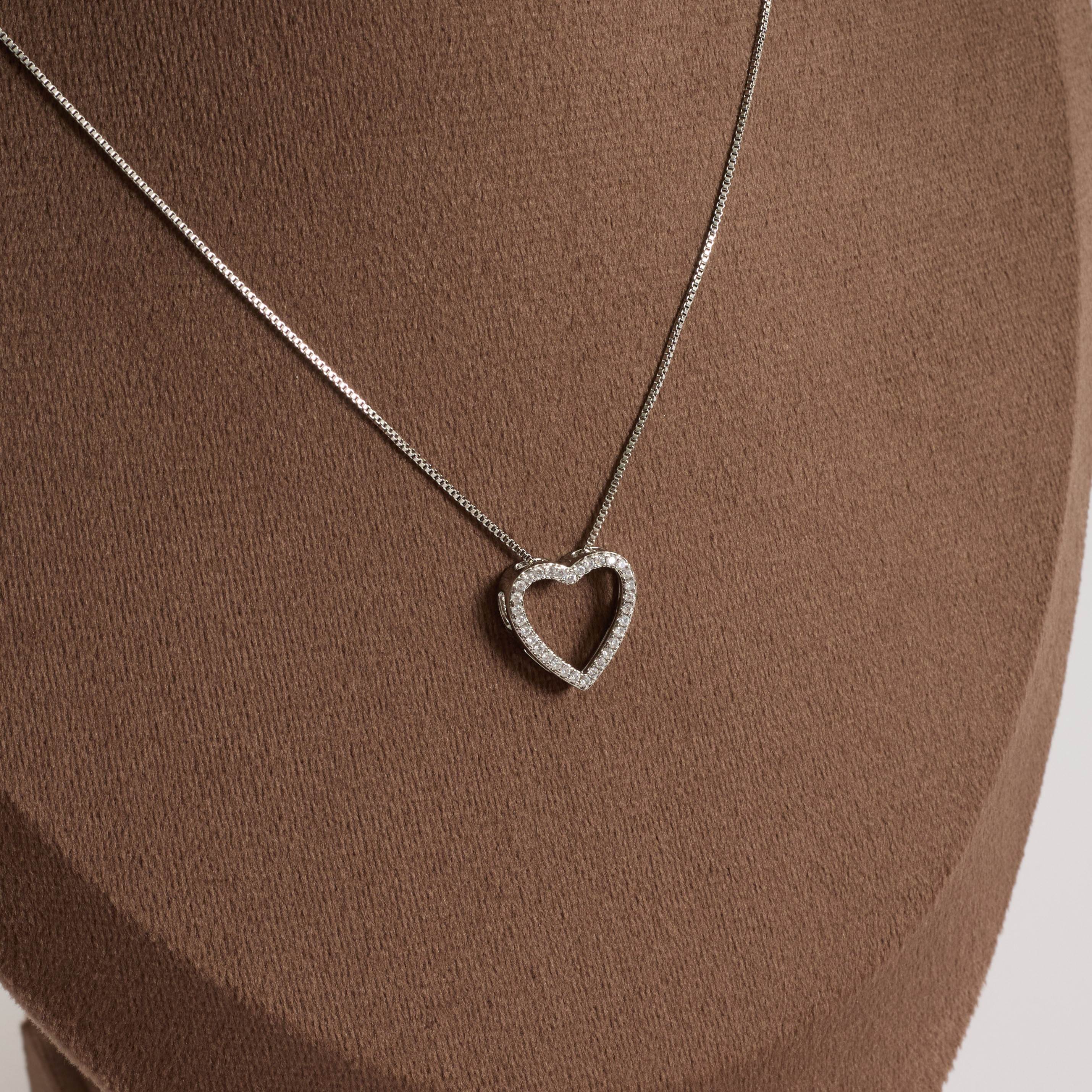 Colar coração vazado cravejado 16mm 45cm com alongadora | asth
