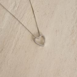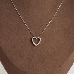 Colar coração vazado cravejado 16mm 45cm com alongadora