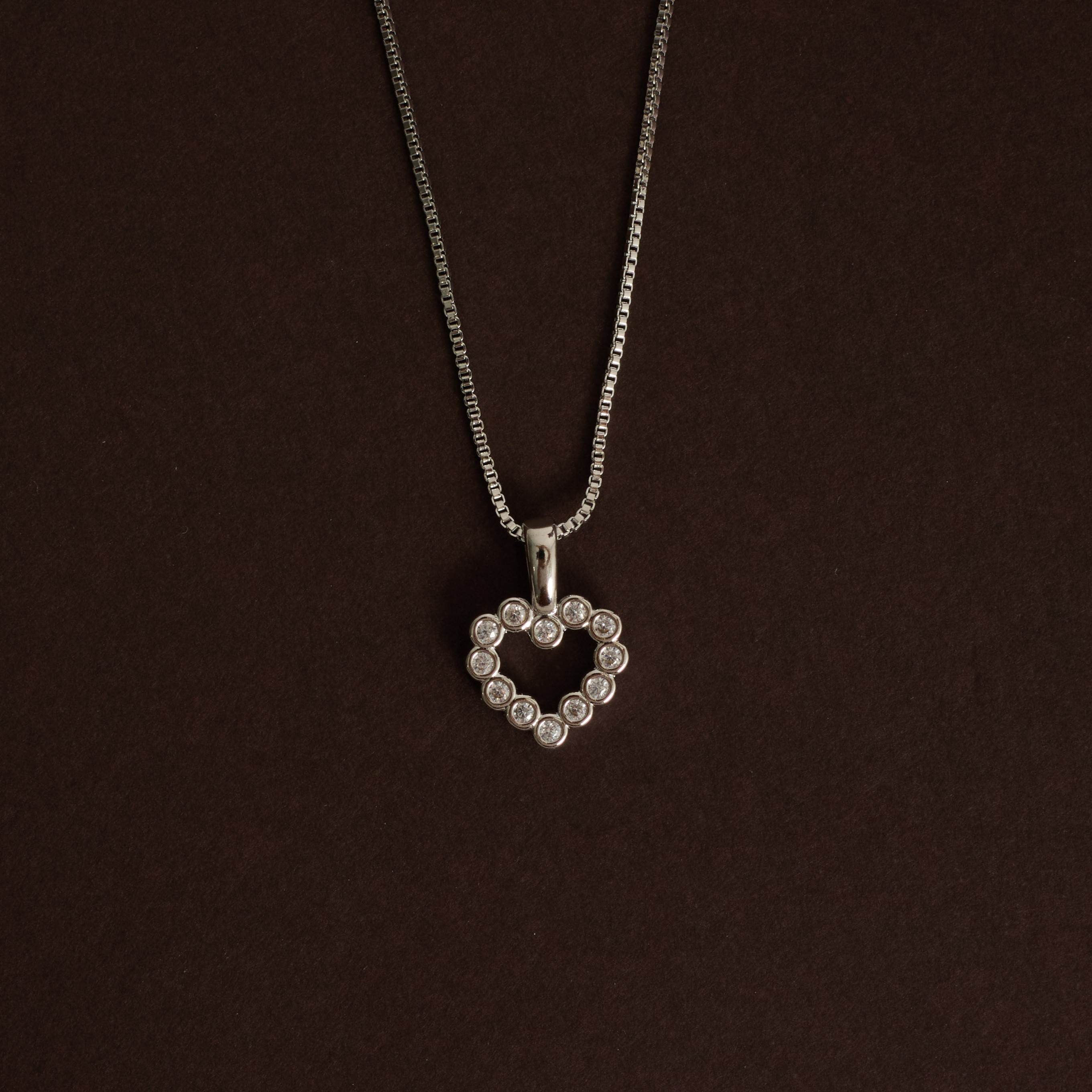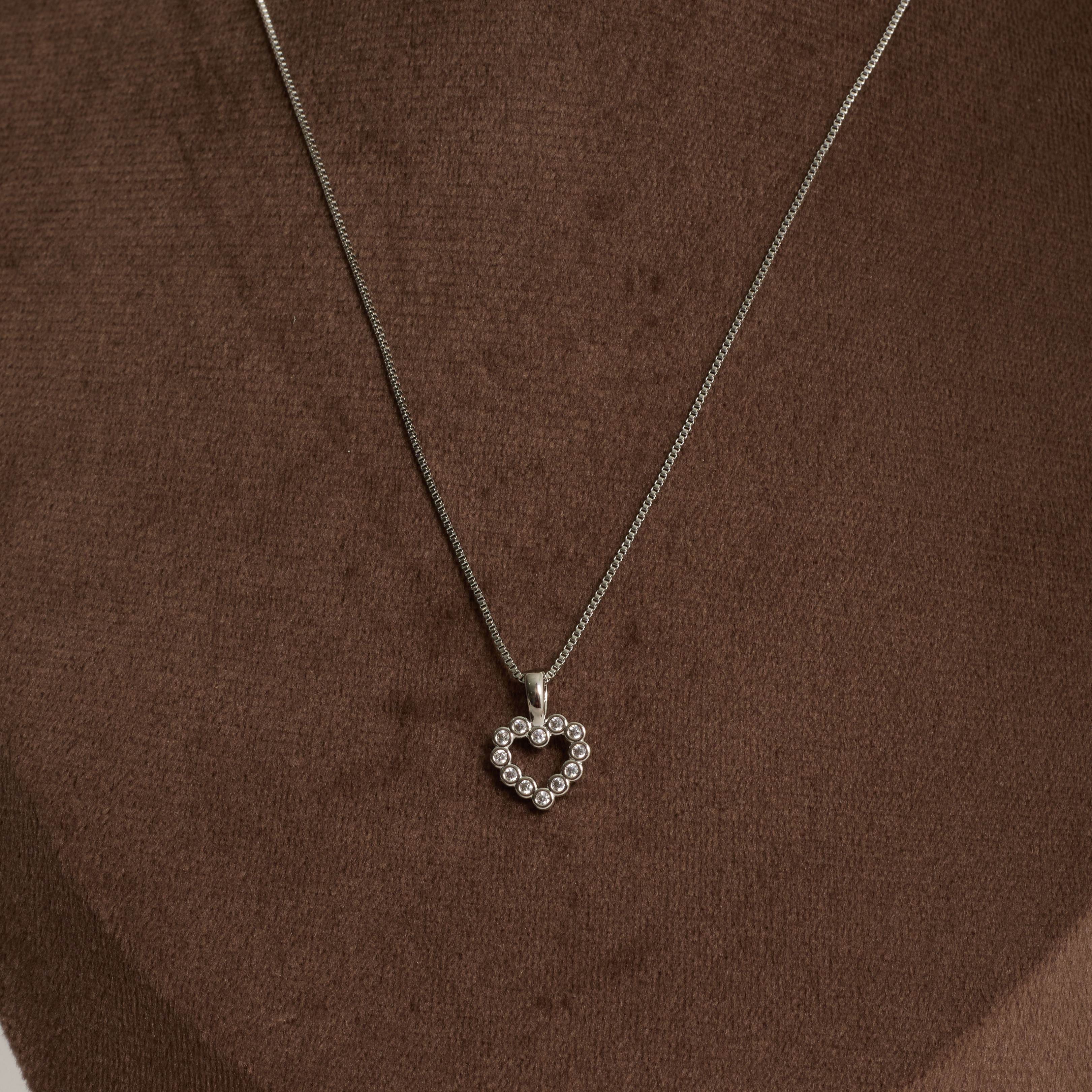 Colar pingente coração vazado cravejado 11mm 45cm com alongadora | asth