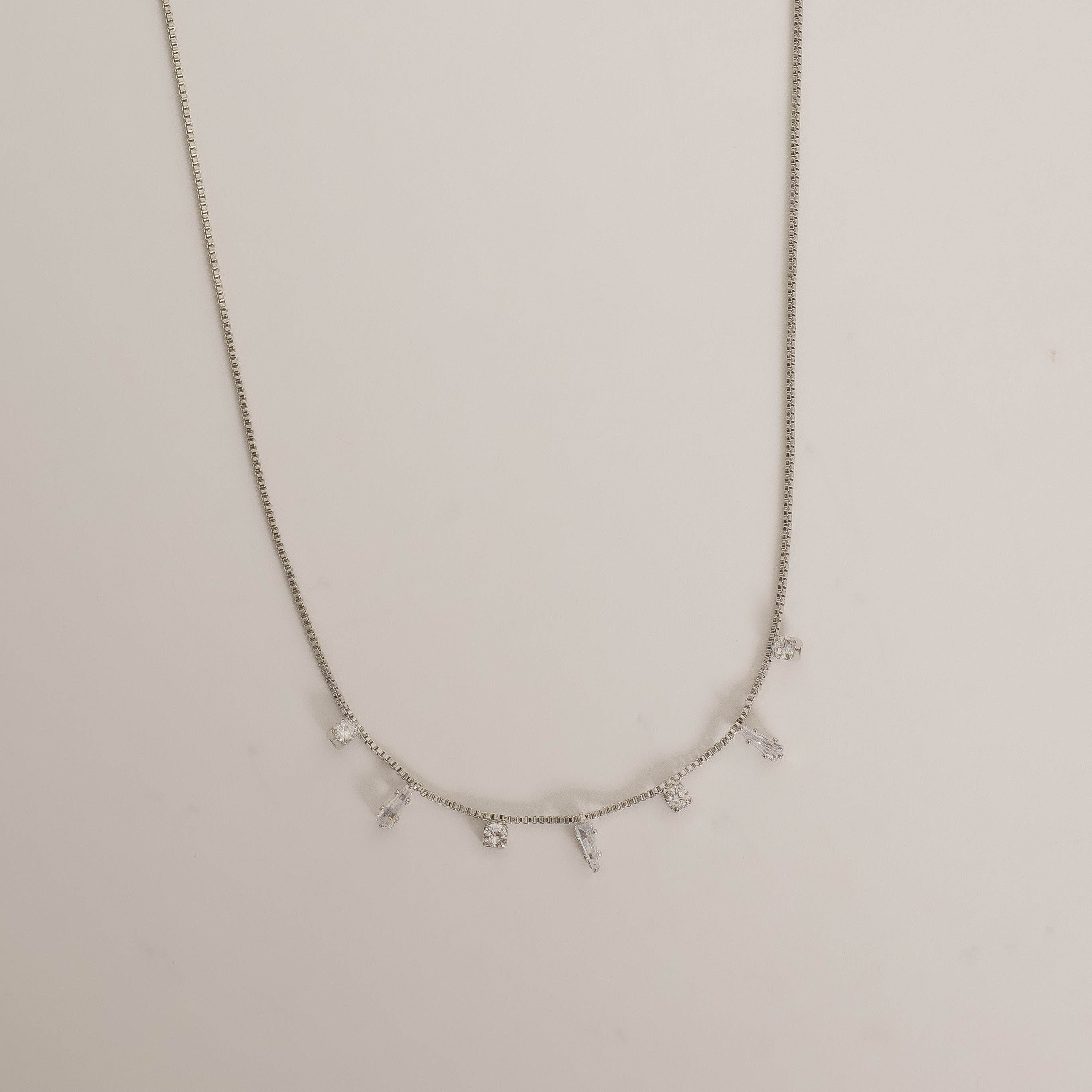 Colar pingentes zircônias triângulo e redonda 40cm com alongadora | asth