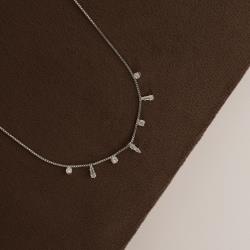 Colar pingentes zircônias triângulo e redonda 40cm com alongadora