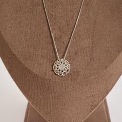 Colar pingente medalha vazada com zircônia 17mm 45cm com alongadora