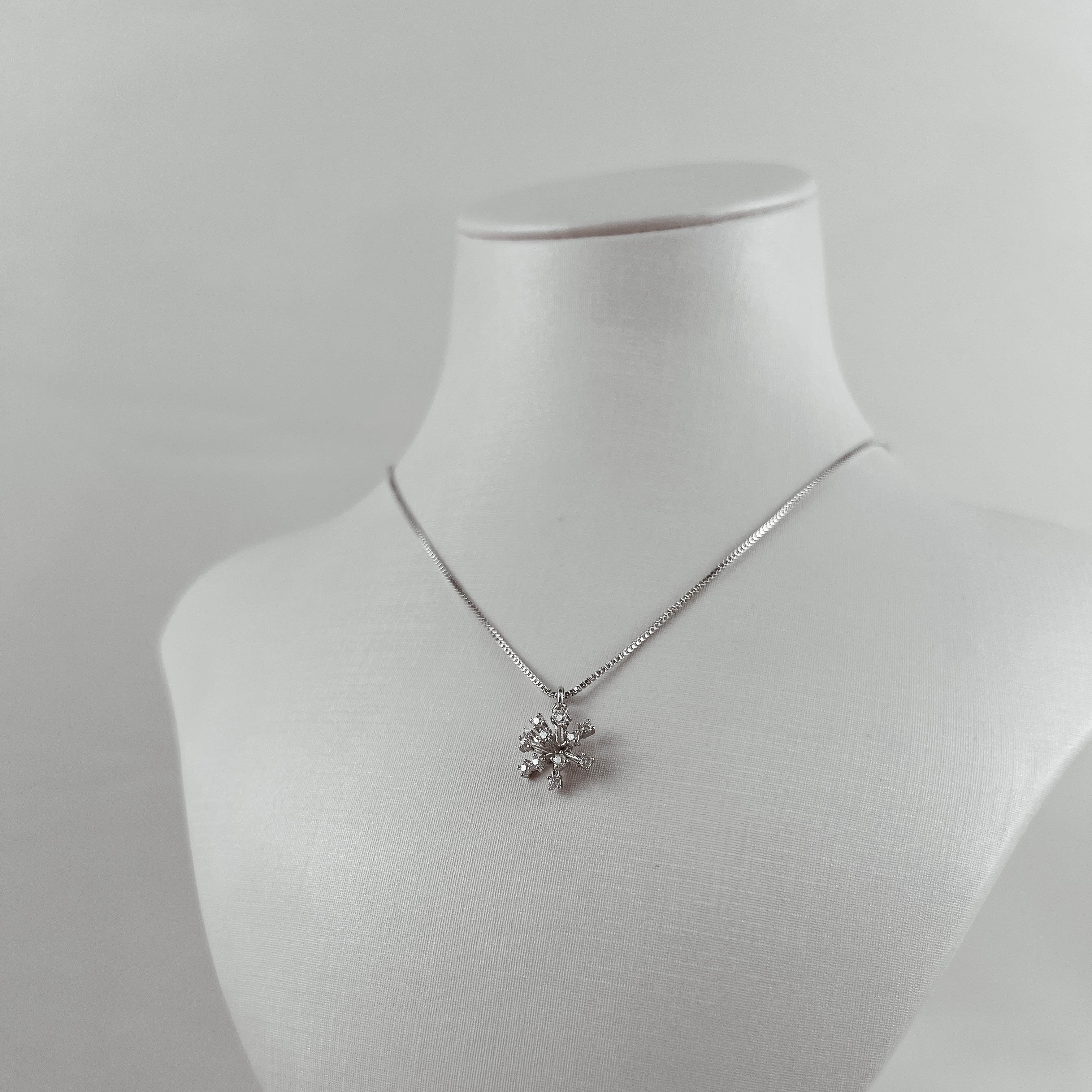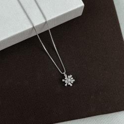 Colar pingente flor com zircônias 12mm 45cm com alongadora