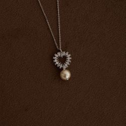 Colar pingente coração vazado cravejado e pérola 19mm 45cm com alongadora | asth
