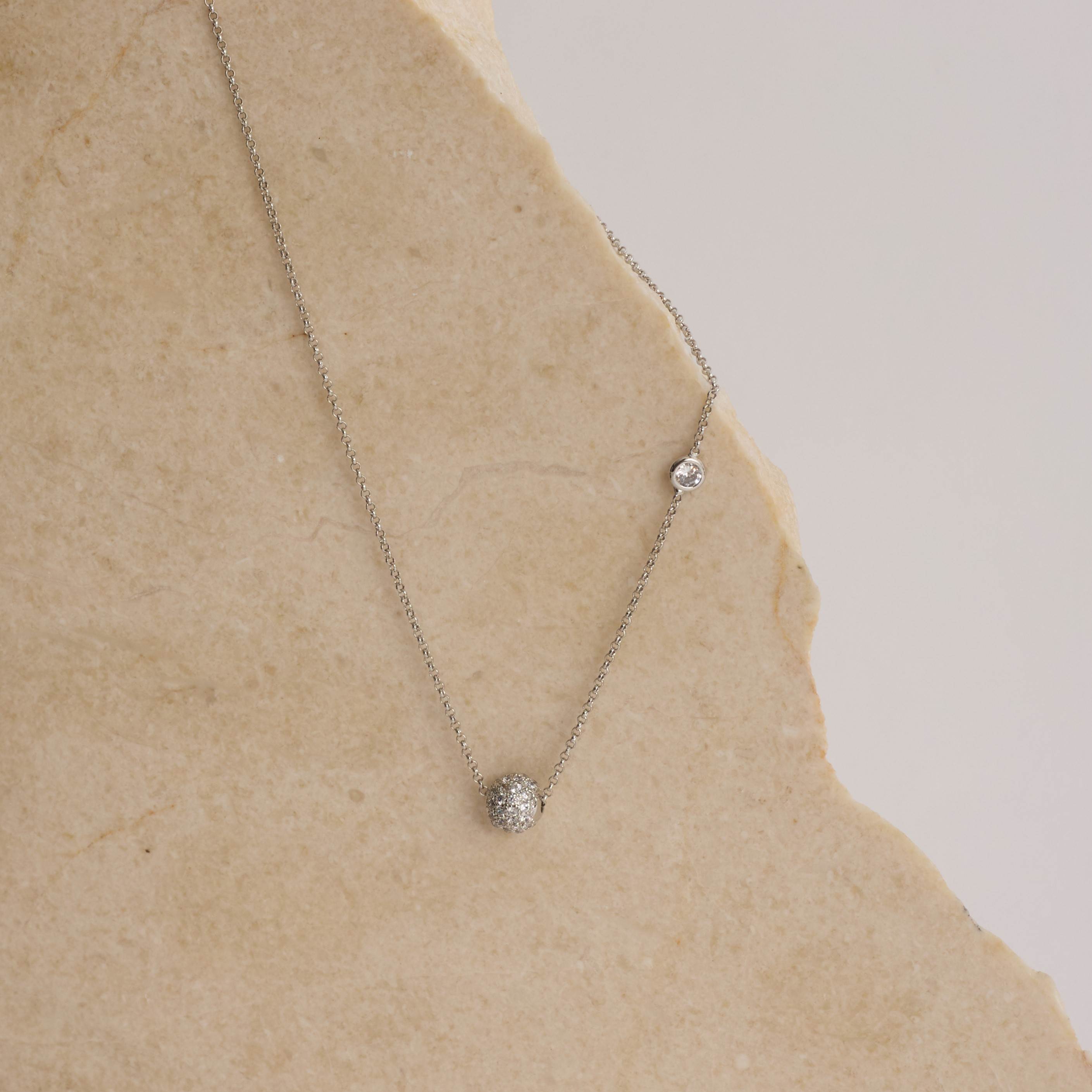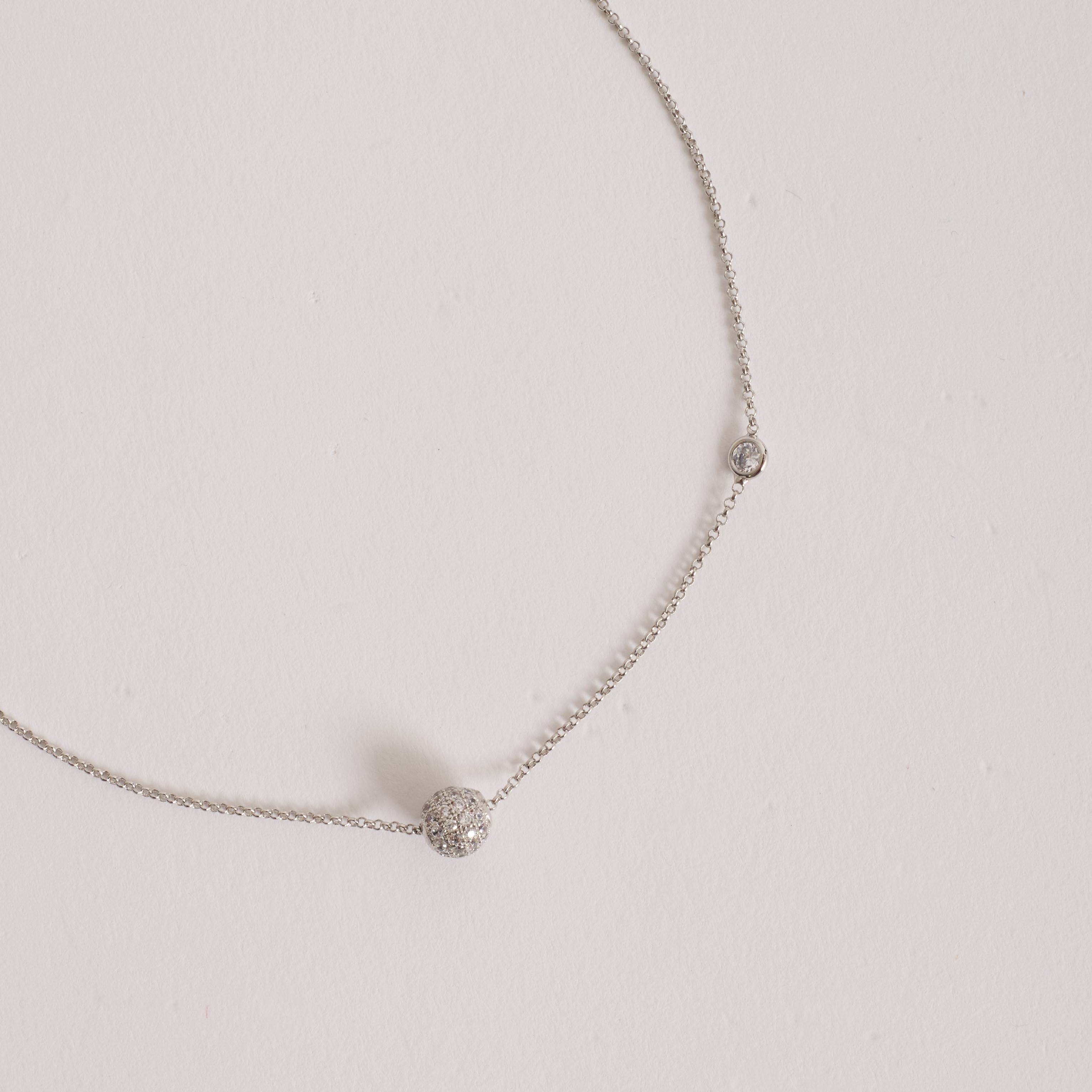 Colar entremeio zircônia e bola cravejada 6mm 40cm com alongadora | asth