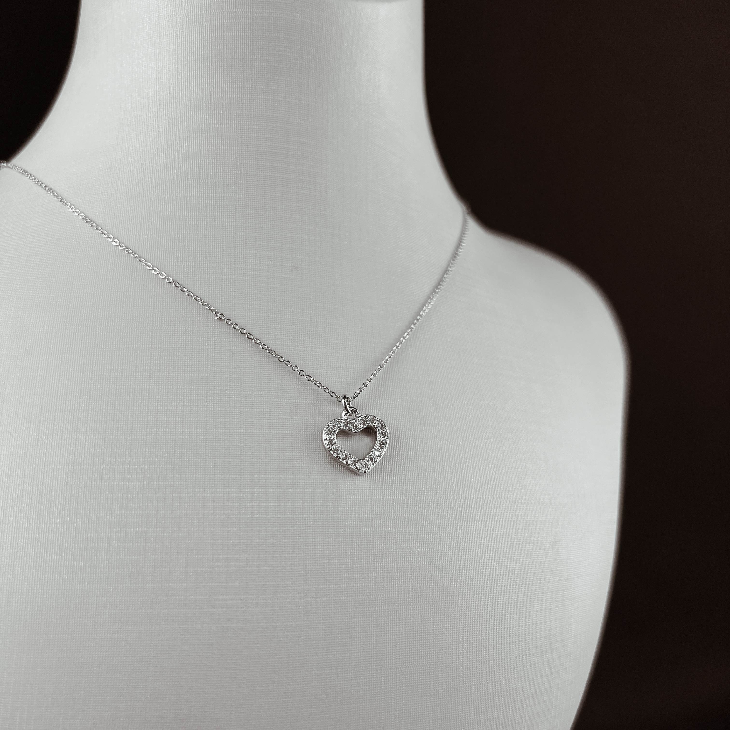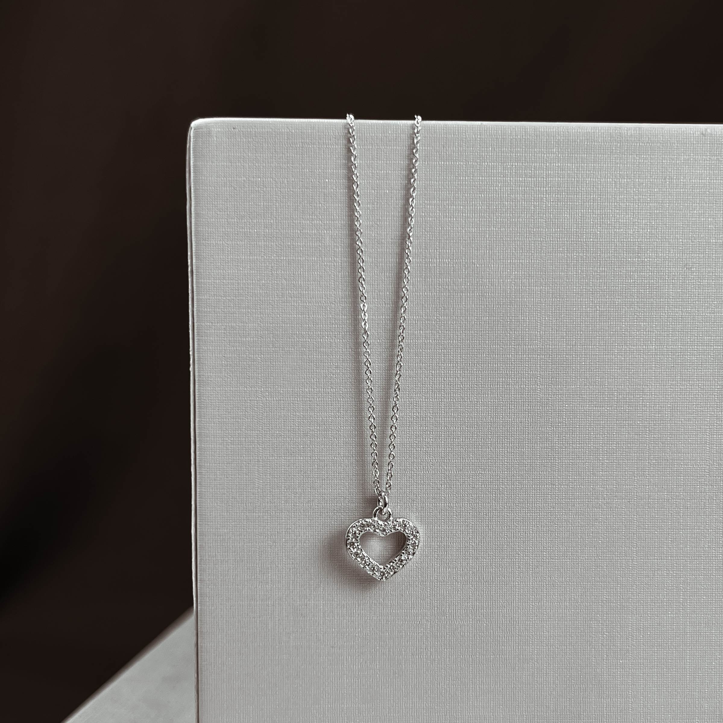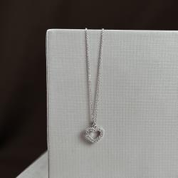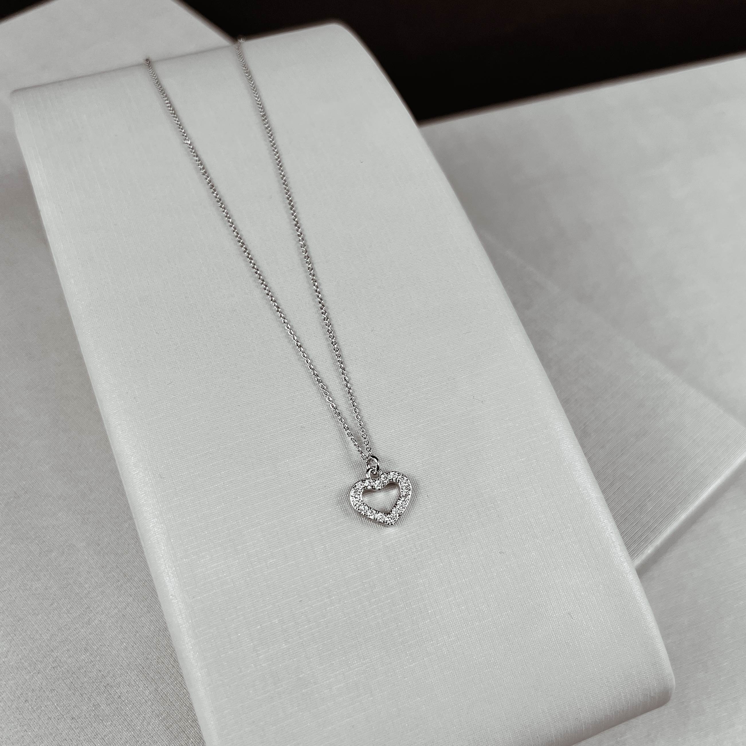 Colar pingente coração vazado cravejado 11mm corrente cadeado 45cm com alongadora | asth