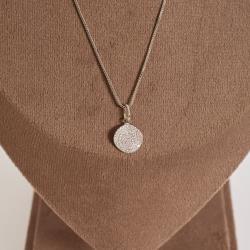 Colar pingente círculo ondulado cravejado 11mm 45cm com alongadora