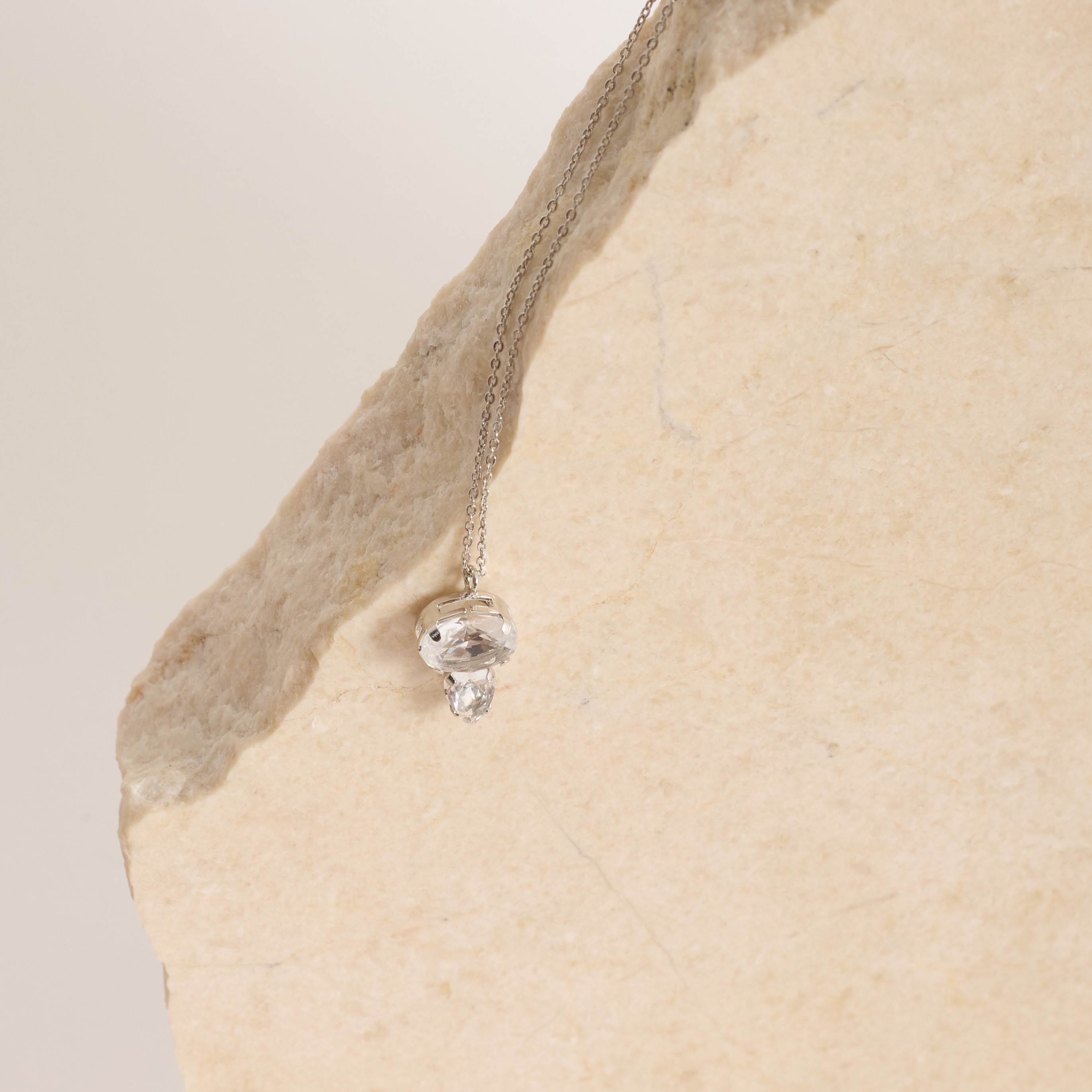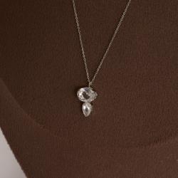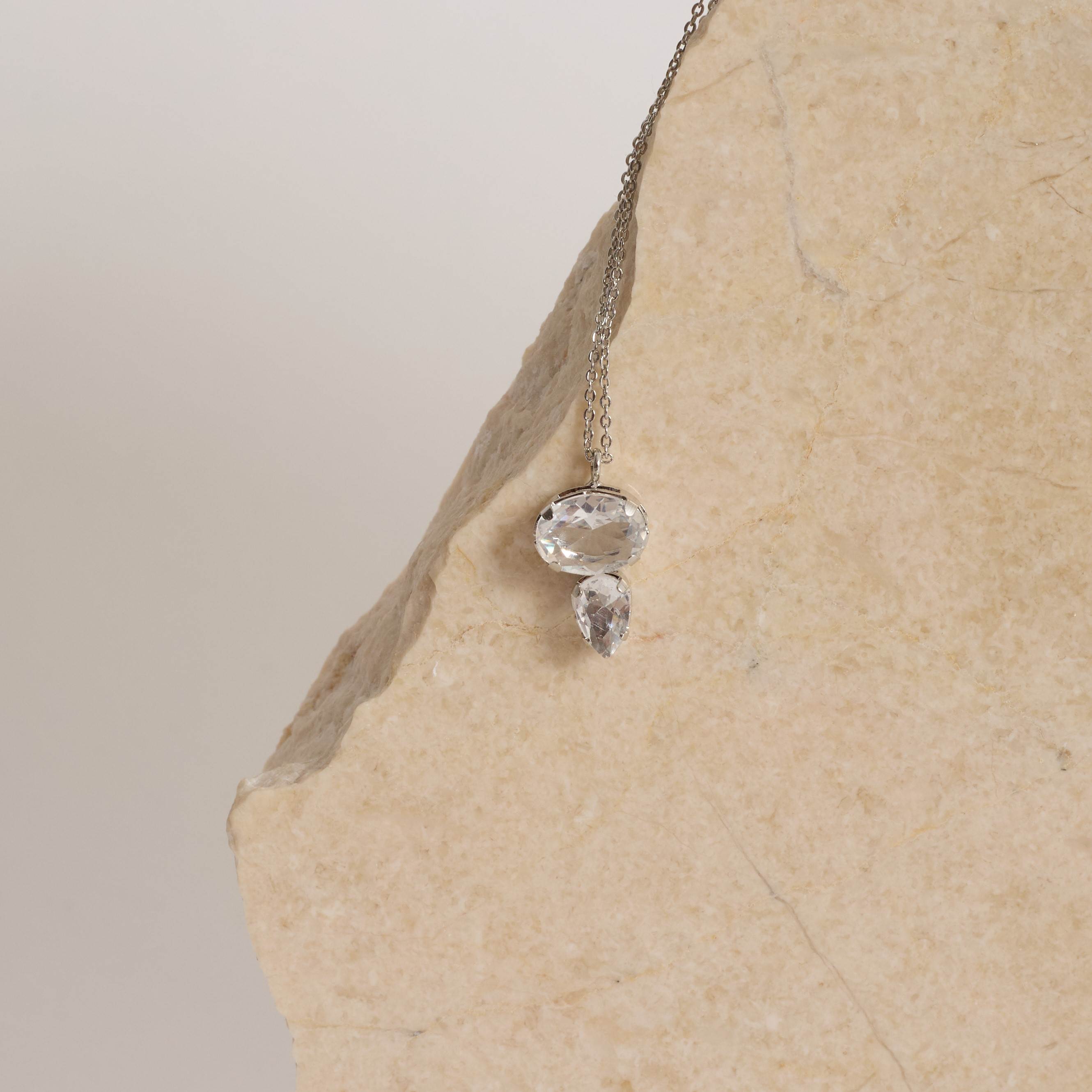 Colar pingente zircônias oval e gota 13mm corrente cadeado 45cm com alongadora | asth