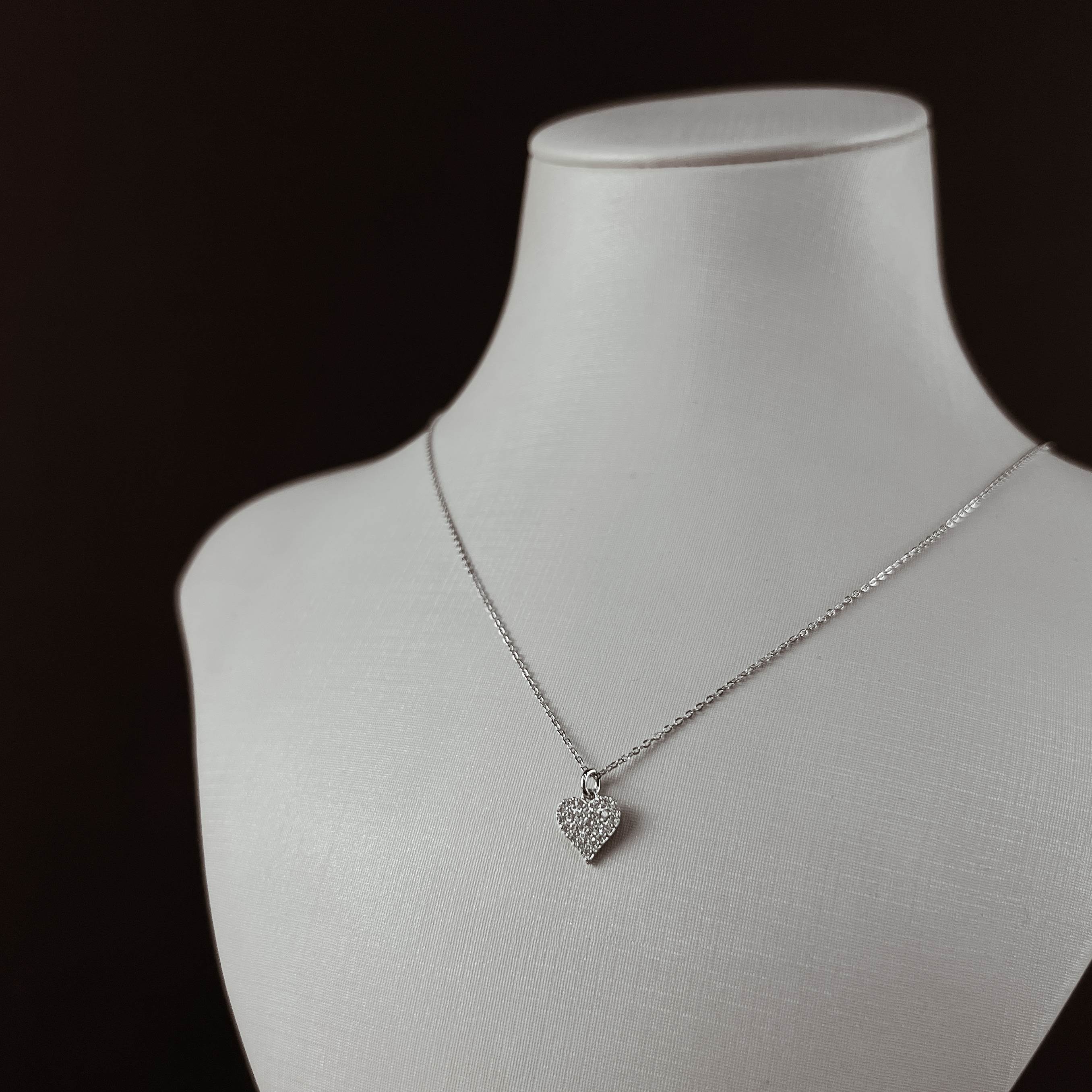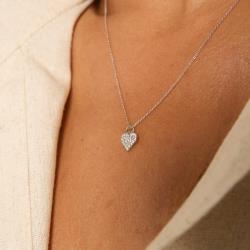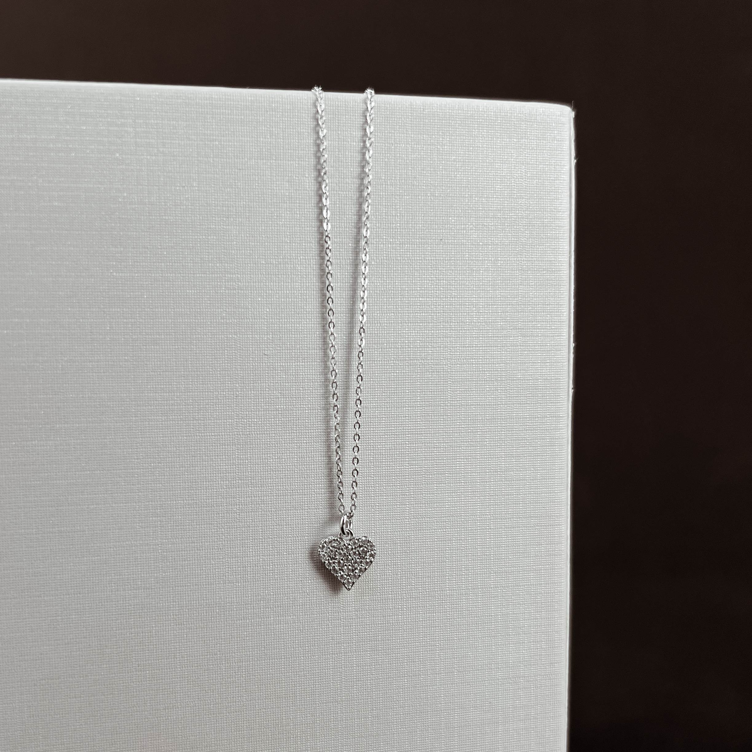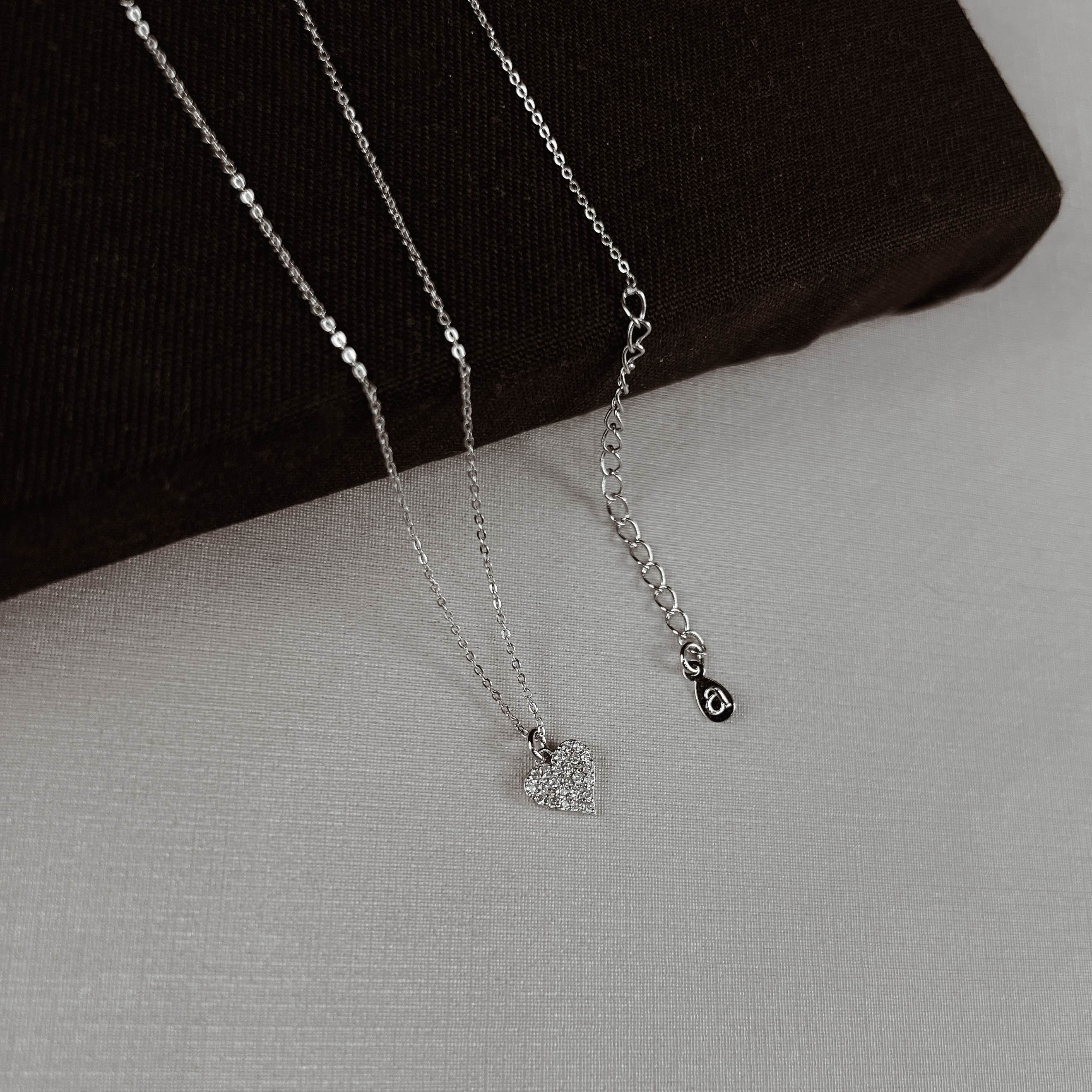 Colar pingente coração cravejado 8mm corrente cadeado 45cm com alongadora | asth