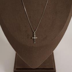 Colar pingente cruz vazada com zircônias 16mm 45cm com alongadora | asth