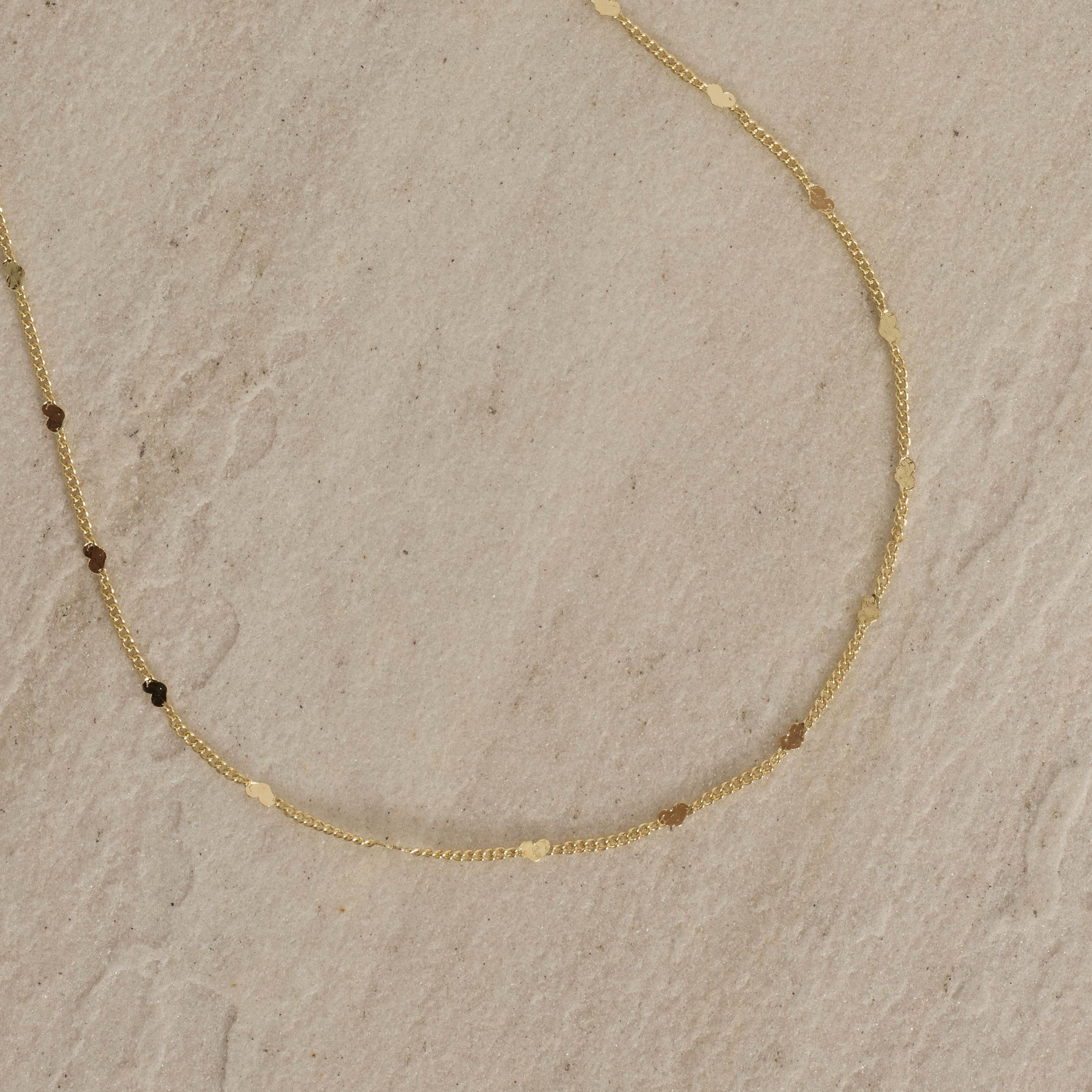 Corrente grumet e corações com detalhes 2mm 60cm com alongadora