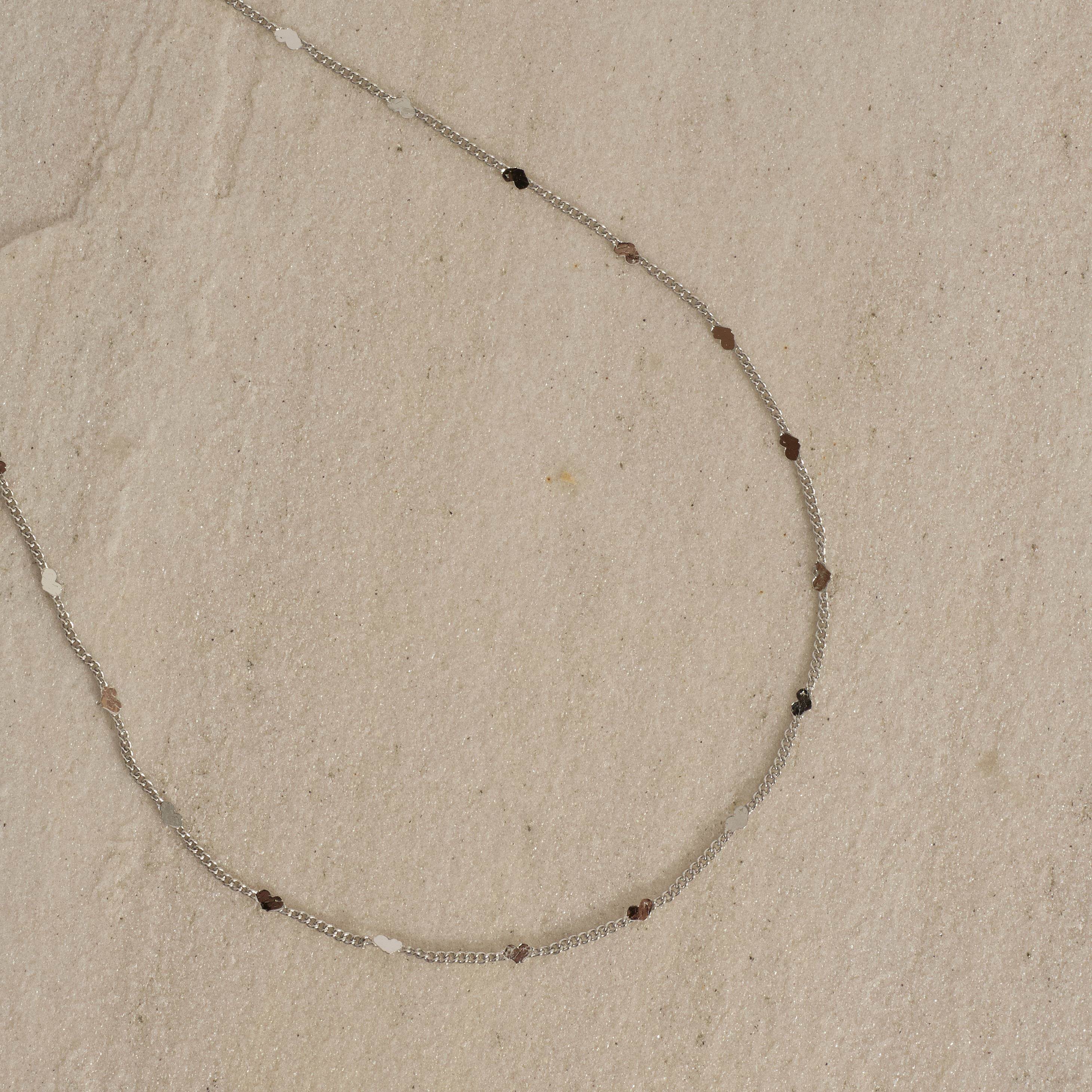 Corrente grumet e corações com detalhes 2mm 45cm com alongadora