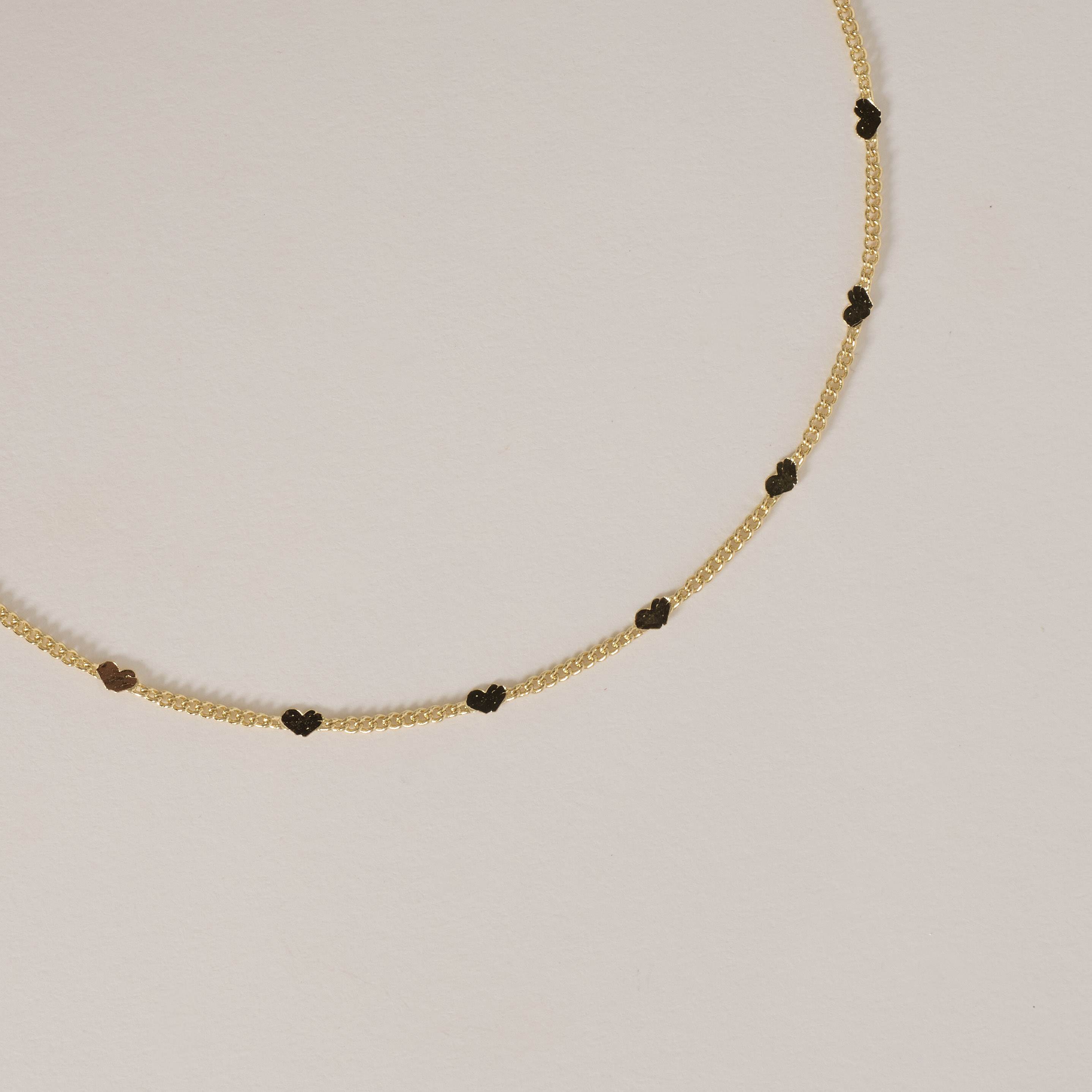Pulseira corrente grumet e corações com detalhes 2mm 18cm com alongadora | asth