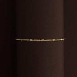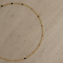Pulseira corrente grumet e corações com detalhes 2mm 18cm com alongadora