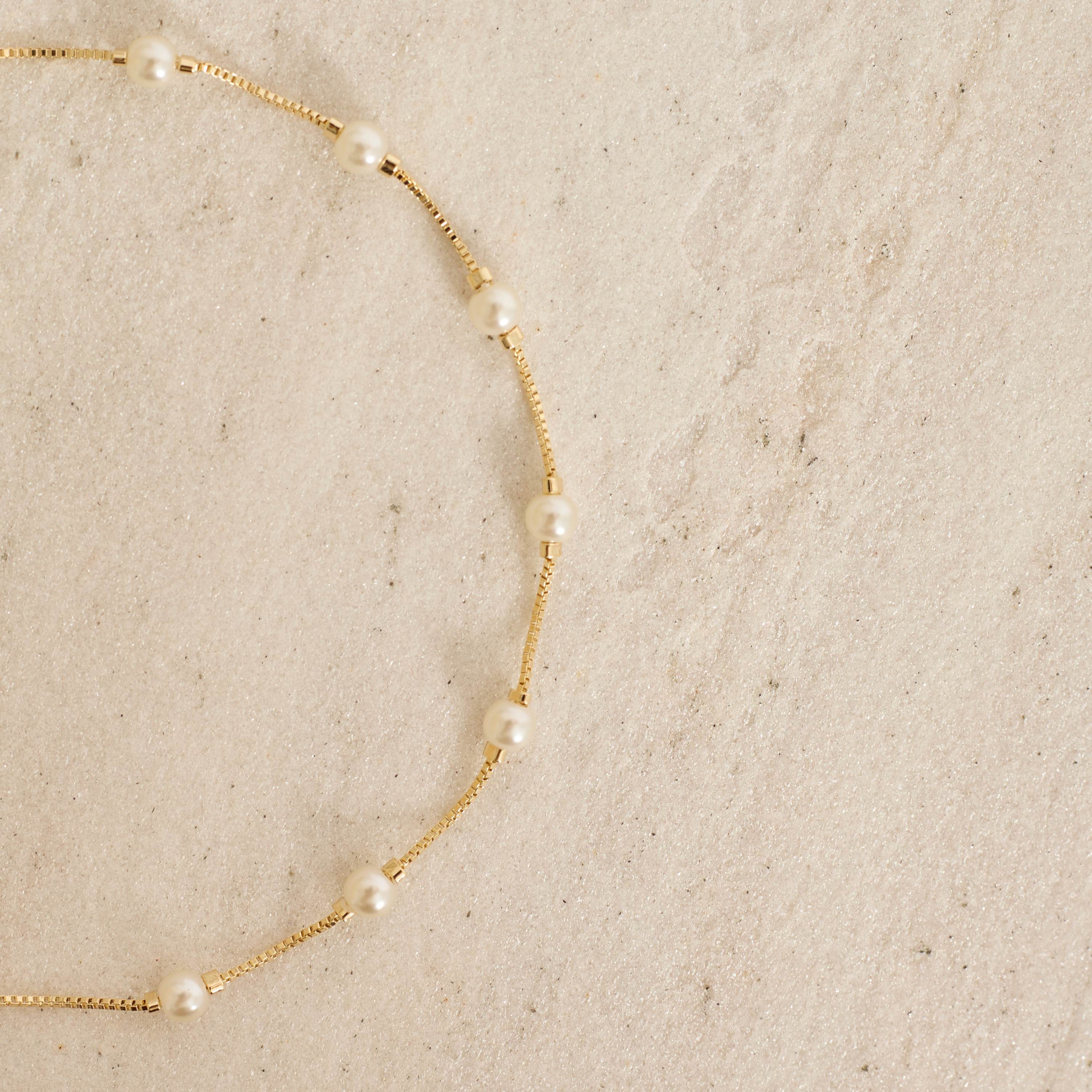 Pulseira entremeio pérolas 4mm 16cm com alongadora