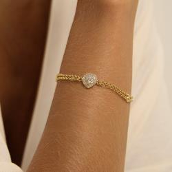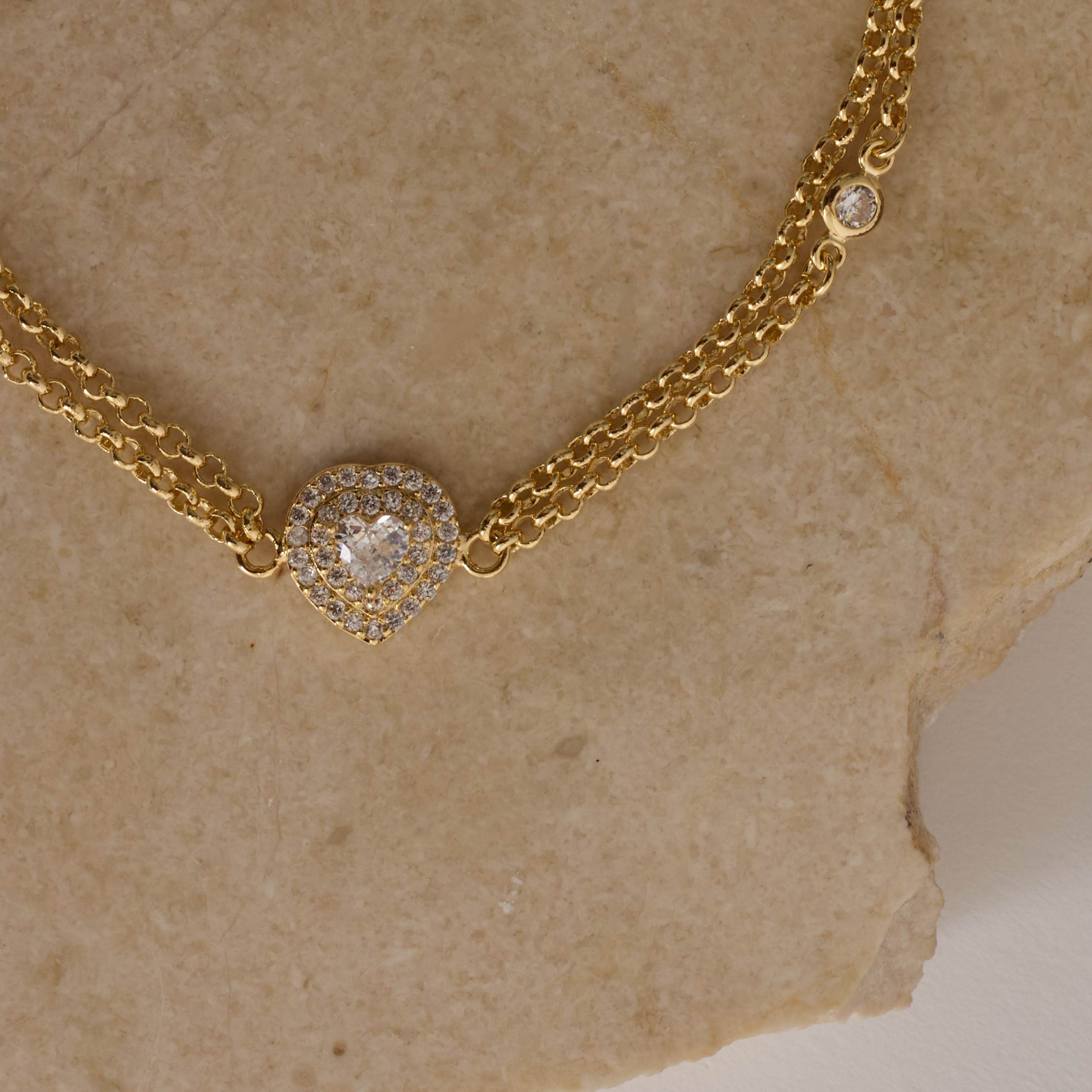 Pulseira entremeio zircônia coração com cravejado 10mm corrente dupla elo português com alongadora | asth