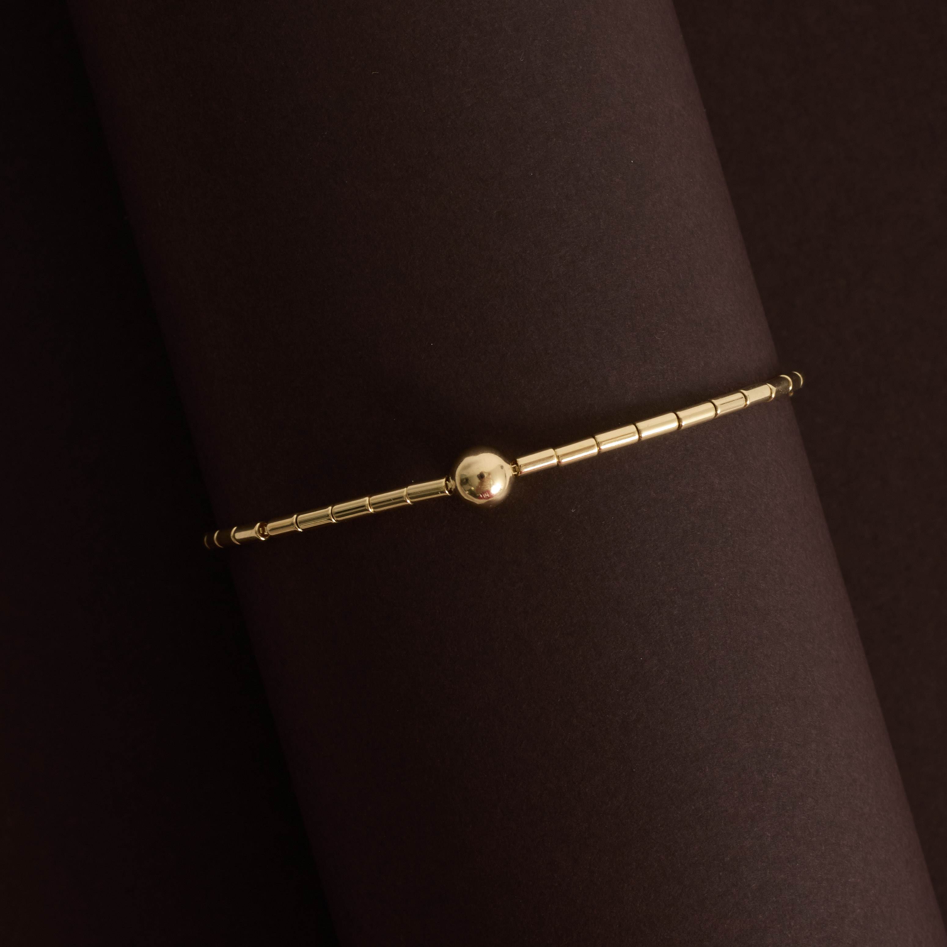 Pulseira entremeio canutilhos com bola 6mm fecho regulável | asth