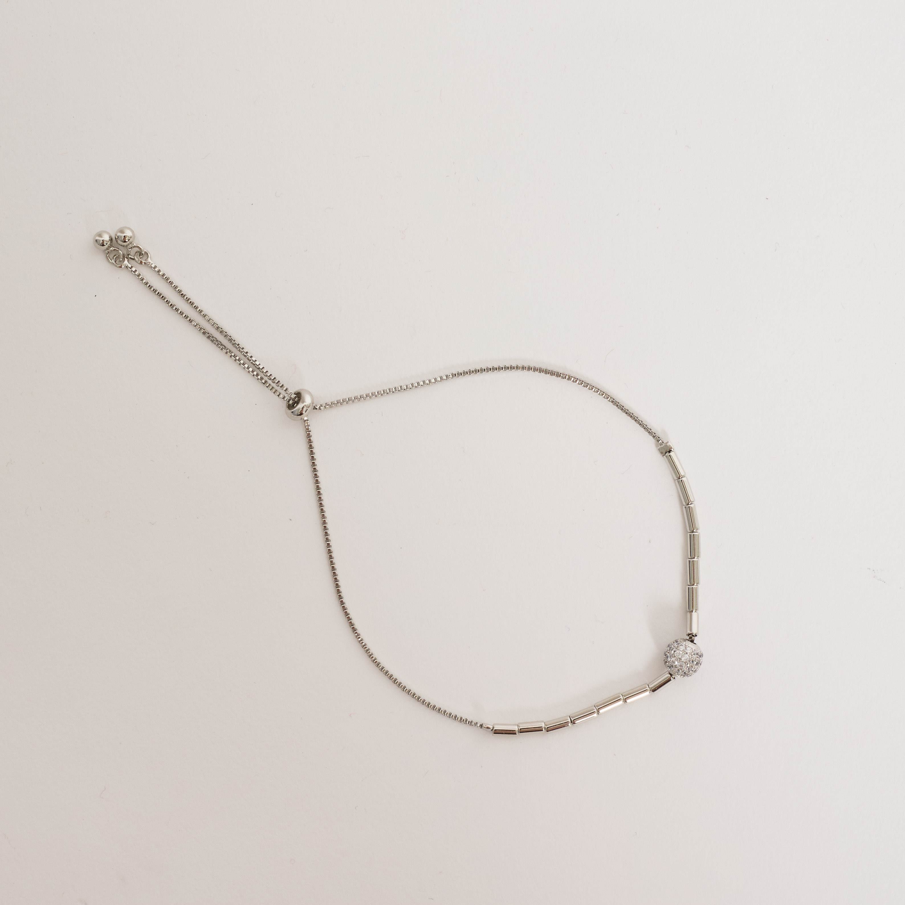 Pulseira entremeio canutilhos com bola cravejada 6mm fecho regulável | asth