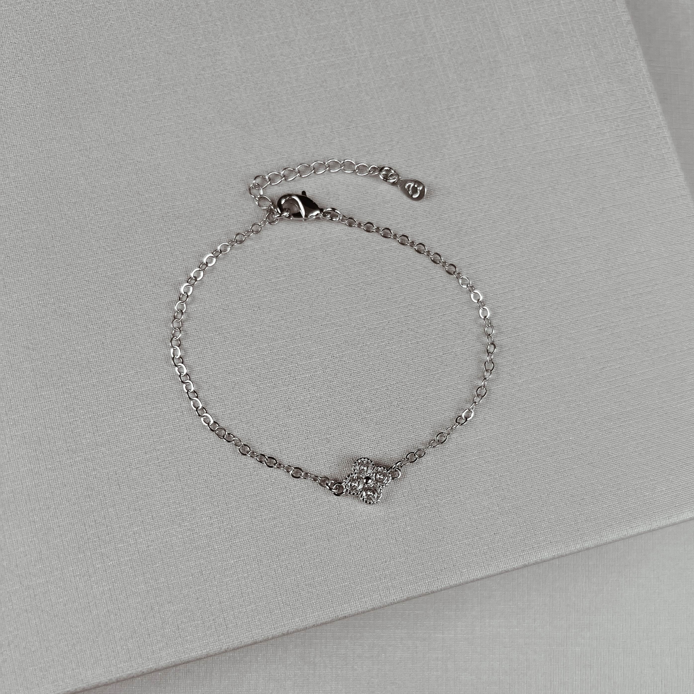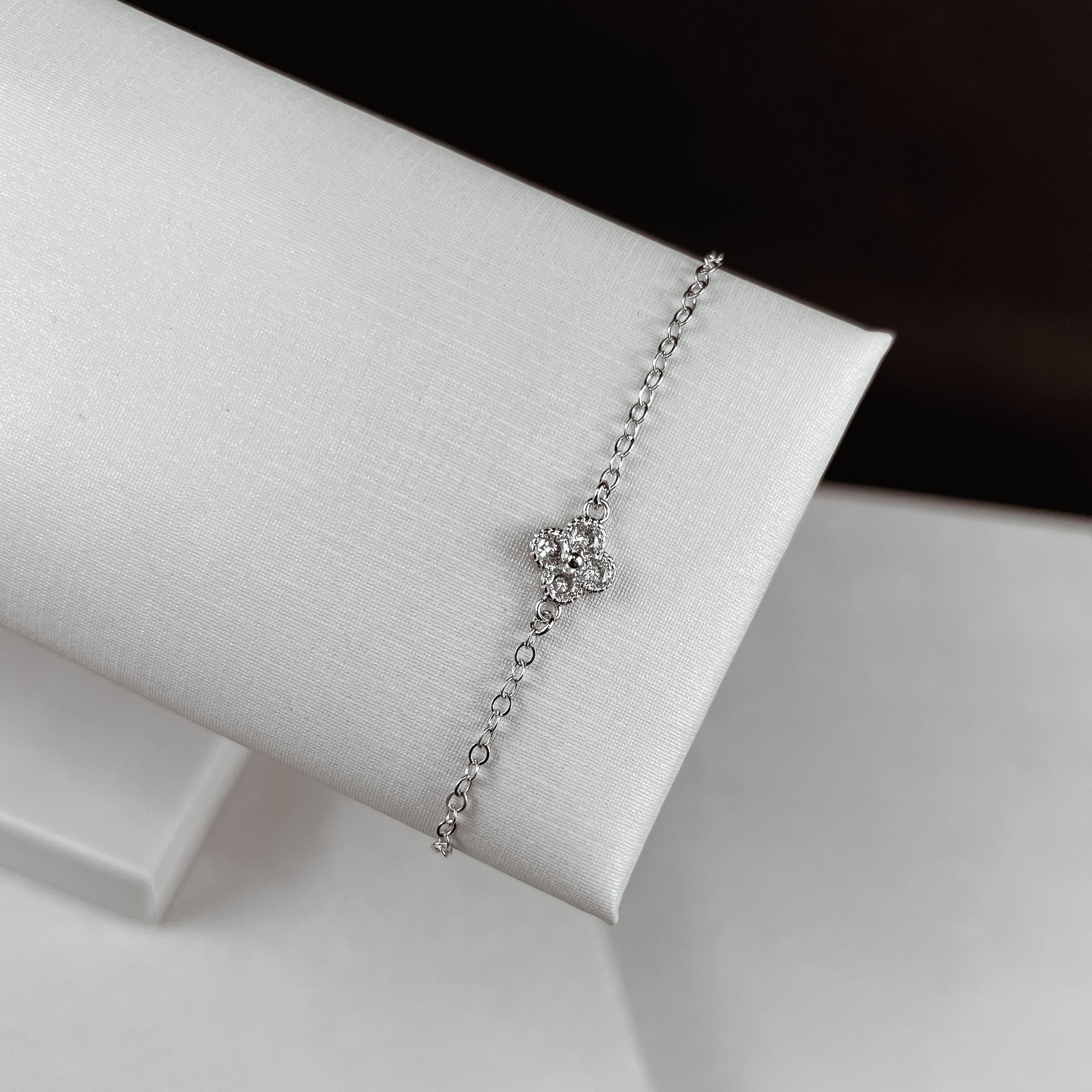 Pulseira entremeio trevo cravejado 8mm corrente cadeado com alongadora | asth