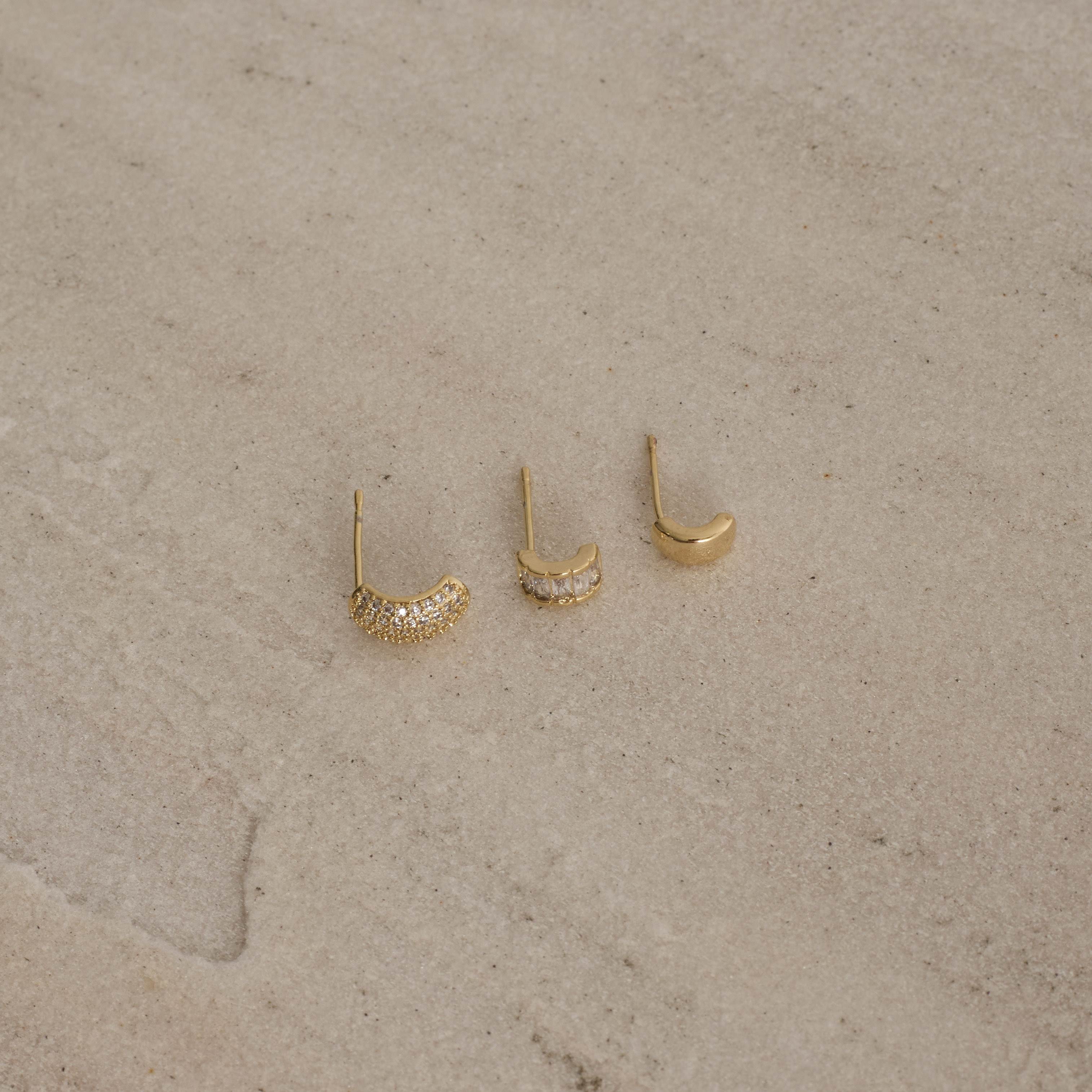 Trio meia argolas lisa e cravejadas 7, 7 e 10mm | asth